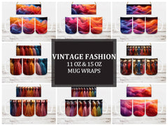 Dive into the world of vintage glamour with our Vintage Fashion-themed mug wraps. Adorned with illustrations of iconic fashion icons, retro accessories, and stylish ensembles, these wraps celebrate the timeless allure of vintage style. Wrap your mug in the spirit of elegance and let the imagery of bygone eras inspire moments of timeless sophistication and chic as you enjoy your morning cup of coffee.