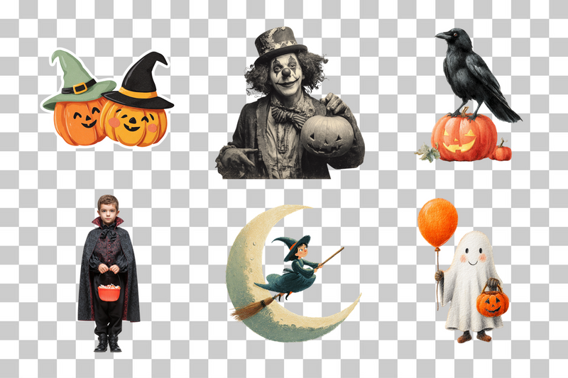 Capture the essence of vintage Halloween with our meticulously crafted clipart, offering endless possibilities for your artistic endeavors.