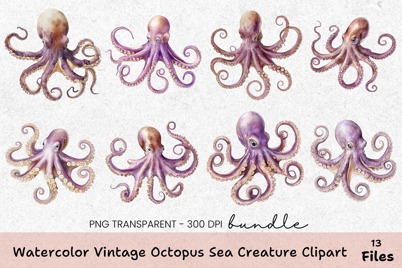 Unleash creativity with our Vintage Octopus Sea Creature Clipart Bundle, featuring intricate and timeless octopus designs perfect for nautical-themed projects. Dive into a world of oceanic charm with these high-quality illustrations, ideal for scrapbooking, digital art, and unique crafts. Transform your creative endeavors with this captivating collection, designed to inspire and enchant. Perfect for artists, designers, and sea life enthusiasts seeking a touch of vintage elegance.