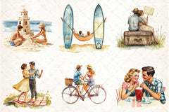 Enhance your creative projects with our Vintage Summer Couple Clipart Bundle, featuring charming retro designs perfect for wedding invitations, scrapbooking, and more. Capture the essence of summer romance with these high-quality, versatile illustrations. Ideal for DIY enthusiasts and professional designers alike, this bundle offers endless possibilities for personalized creations. Transform your crafts with timeless elegance and nostalgic flair.