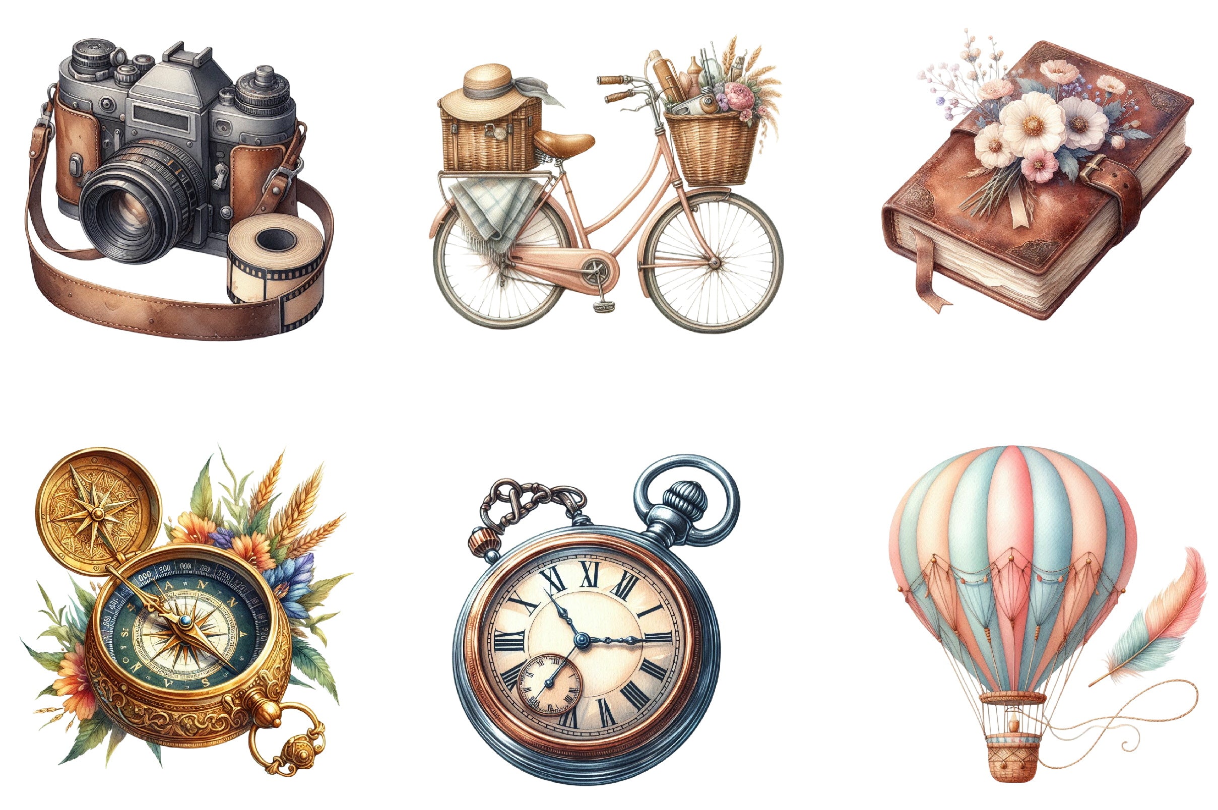 Explore the charm of yesteryears with our Vintage Travel Clipart Bundle, featuring exquisite retro designs perfect for crafting nostalgic travel-themed projects. Ideal for scrapbooking, invitations, and digital art, this collection brings a timeless touch to your creative endeavors. Unleash your imagination with these high-quality, versatile illustrations that capture the essence of classic travel adventures. Perfect for designers, hobbyists, and vintage enthusiasts looking to add a unique flair to their work.