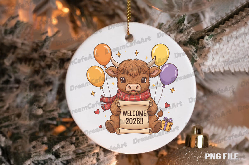 Welcome 2026 Highland Cow Clipart Bundle