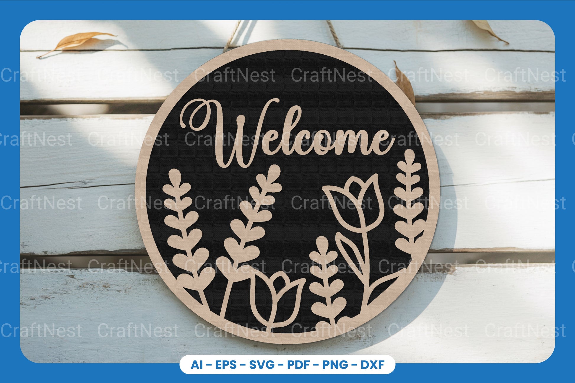 Enhance your home decor with our Welcome Round Sign Laser Cut SVG Bundle, featuring intricate designs perfect for personalized gifts, DIY projects, and unique wall art. Ideal for crafters and hobbyists, this versatile collection offers endless creative possibilities for any occasion.