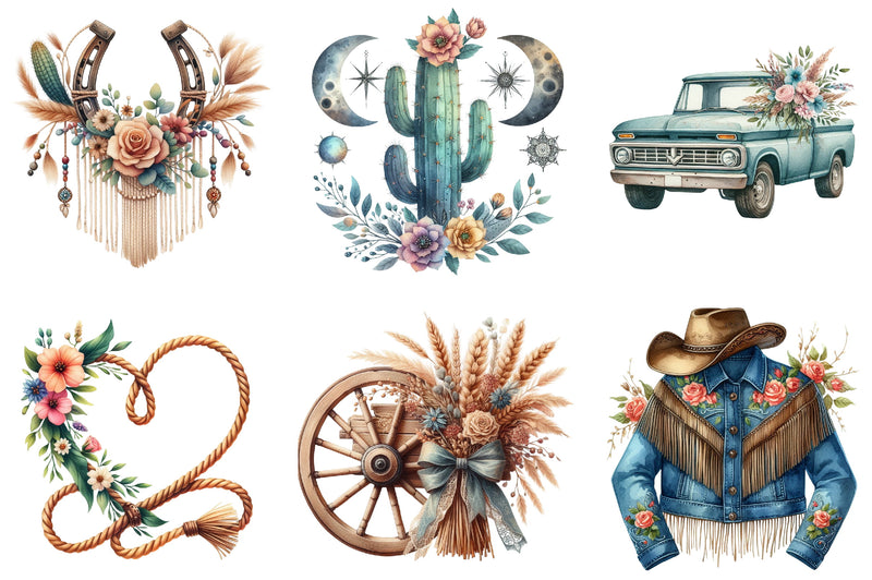 Unleash your creativity with our Western Boho Clipart Bundle, featuring a stunning collection of bohemian-inspired designs perfect for crafting, scrapbooking, and digital projects. Dive into a world of rustic charm with unique elements like dreamcatchers, feathers, and wildflowers, ideal for adding a touch of boho elegance to your creations. Perfect for designers, artists, and DIY enthusiasts looking to infuse their work with a free-spirited, Western vibe. Transform your projects with this versatile clipart set, designed to inspire and captivate.