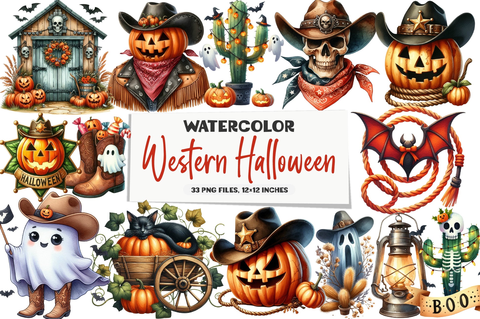 Unleash your creativity with our Western Halloween Clipart Bundle, featuring a diverse collection of spooky and charming designs perfect for festive projects. Ideal for crafting unique invitations, decorations, and digital art, this bundle offers a variety of western-themed Halloween elements to enhance your creative endeavors. Transform your projects with high-quality, easy-to-use clipart that captures the spirit of the wild west and Halloween magic. Perfect for DIY enthusiasts and professional designers alike, this bundle is your go-to resource for all things Halloween and western.