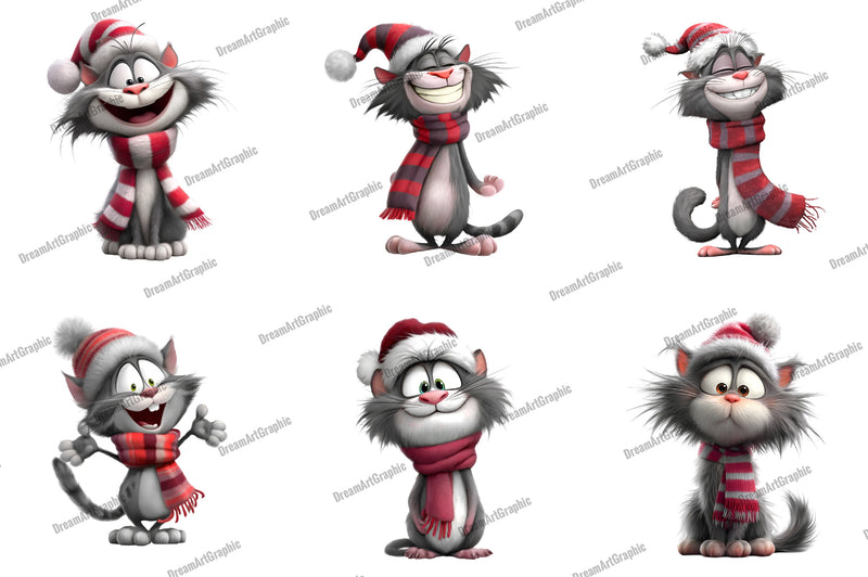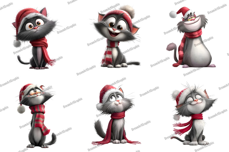 Whimsical Cat Quirky Christmas Clipart Bundle