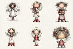 Whimsical Christmas Angel Clipart Design Bundle