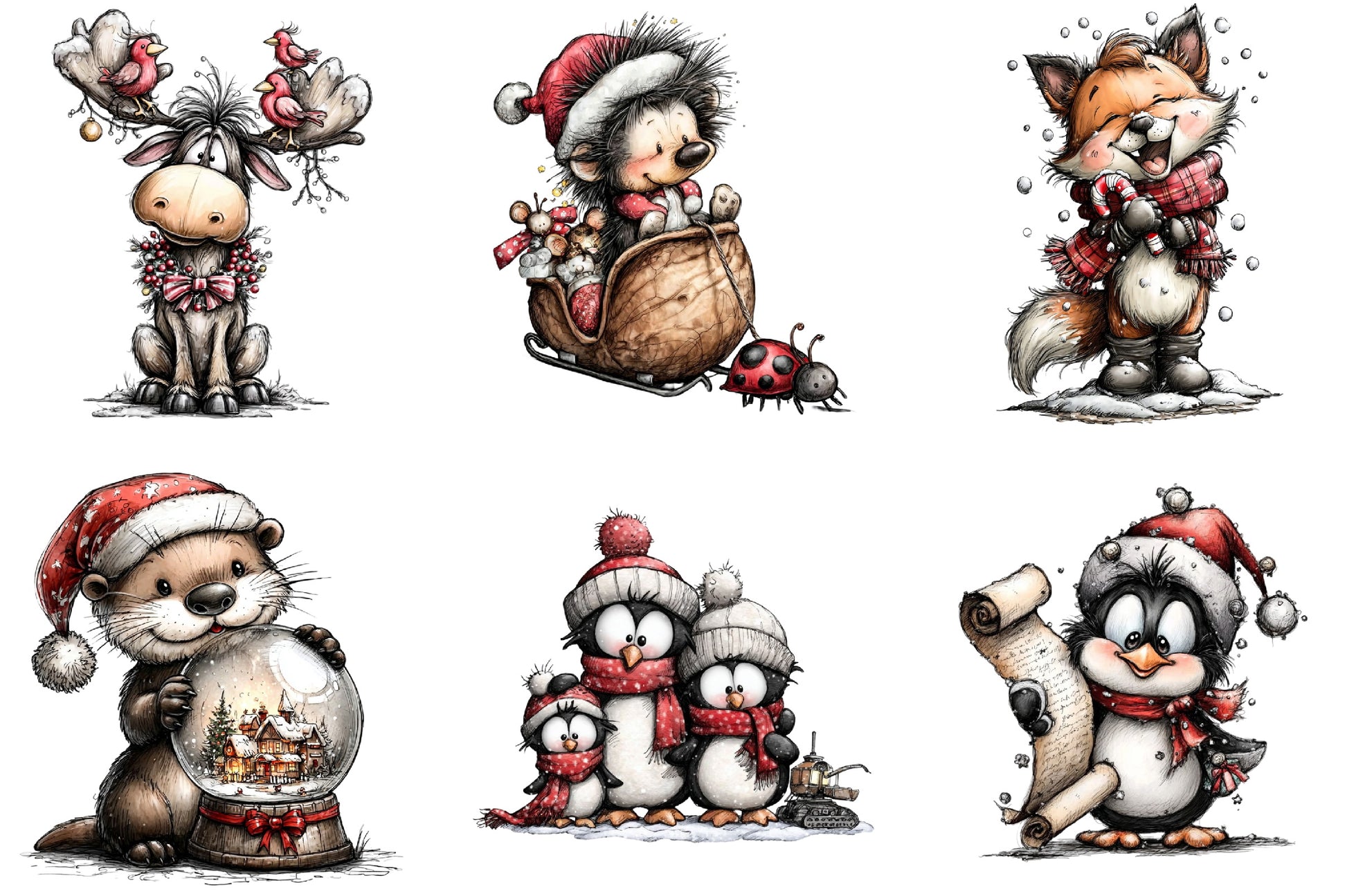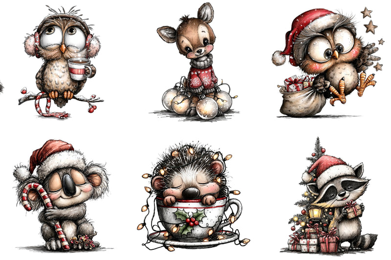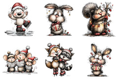 Transform your projects with delightful Christmas animal illustrations, ideal for greeting cards, scrapbooking, and more.