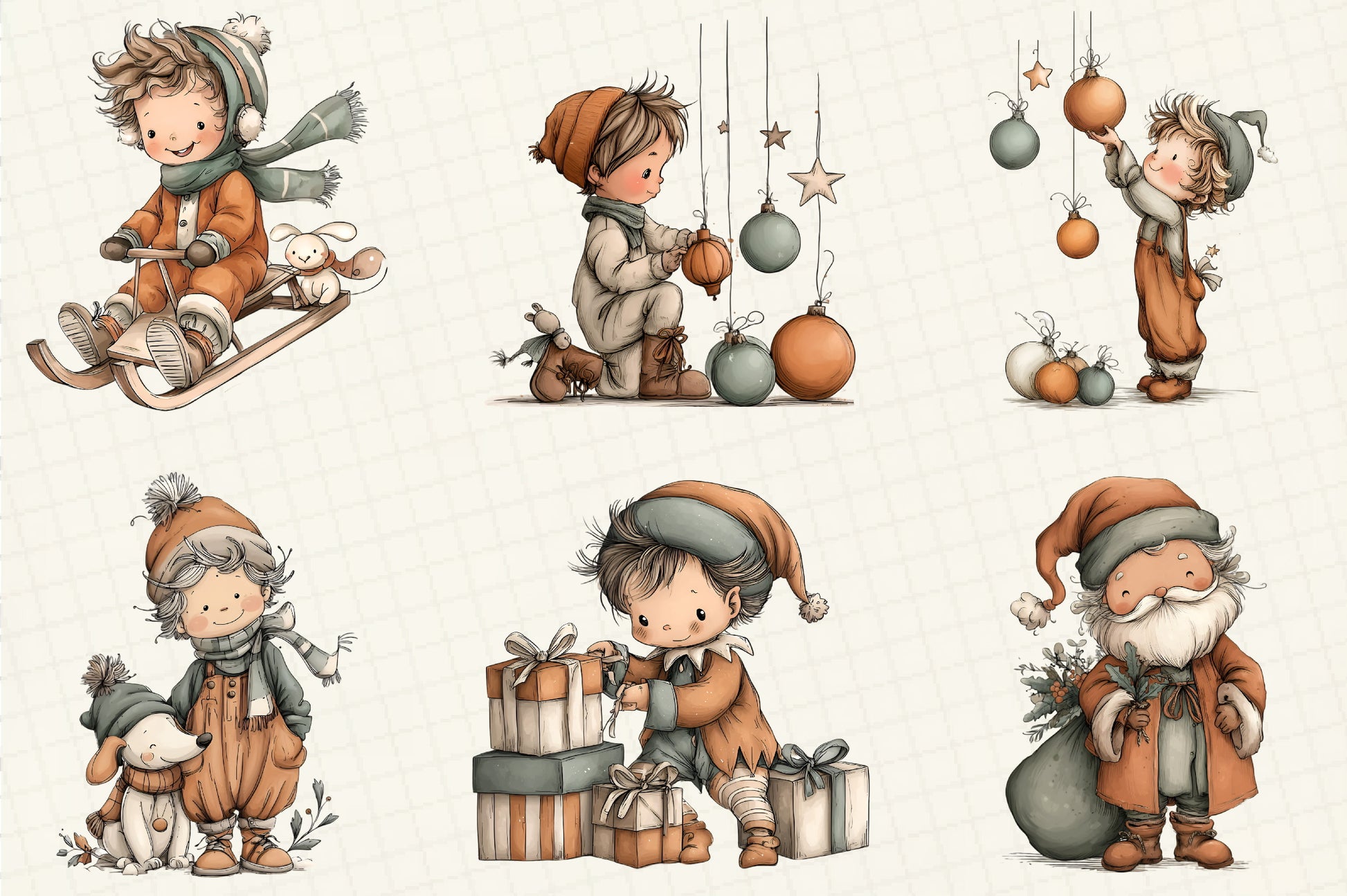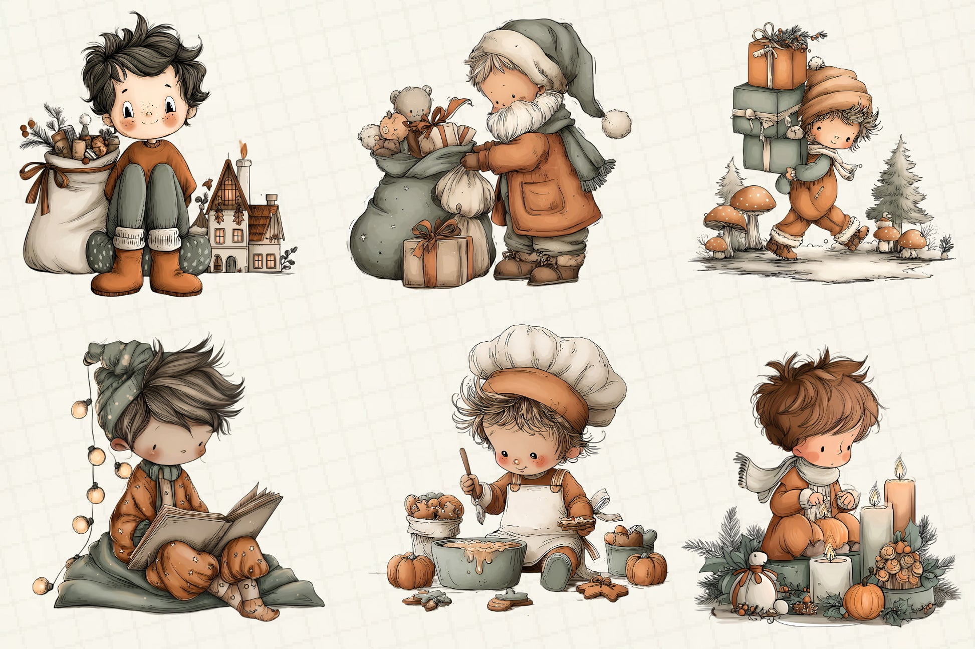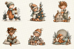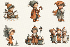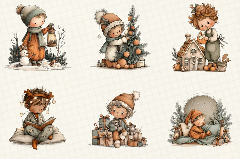 Whimsical Christmas Boy Clipart Bundle