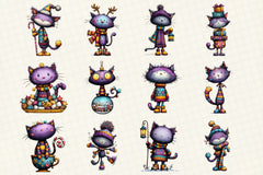 Whimsical Christmas Cat Clipart Bundle