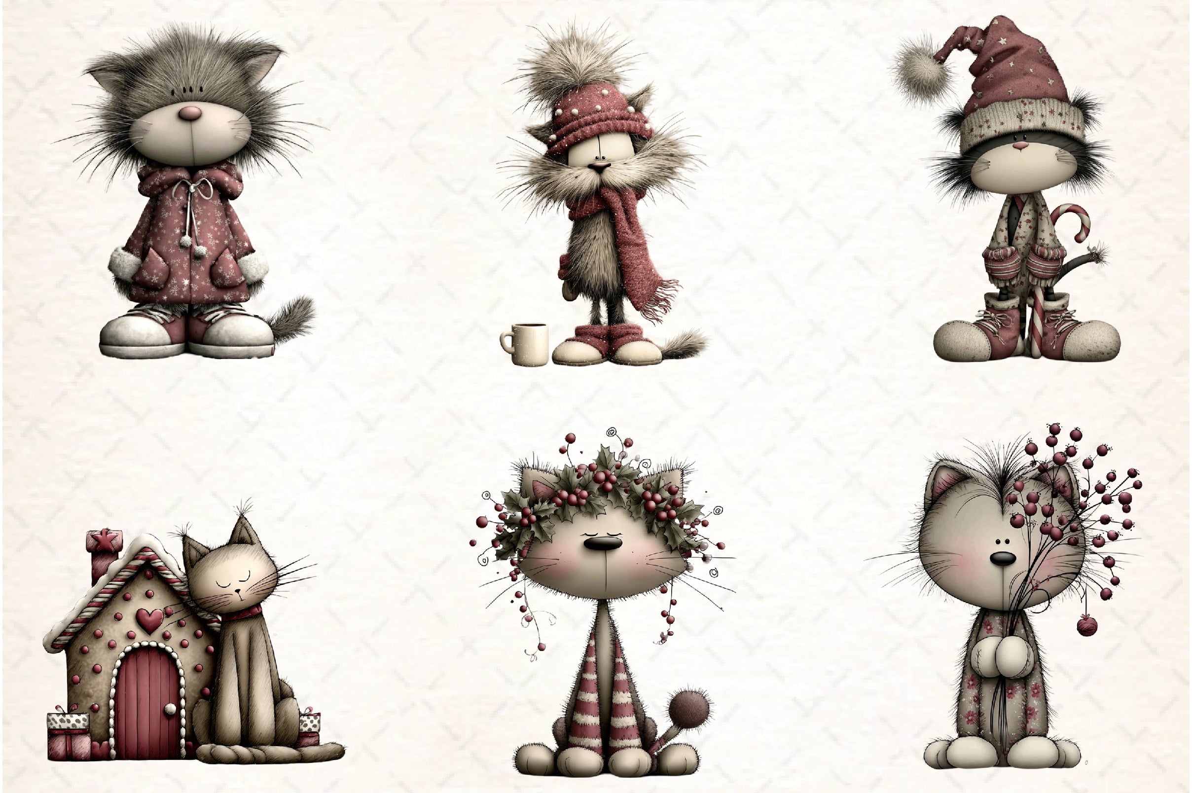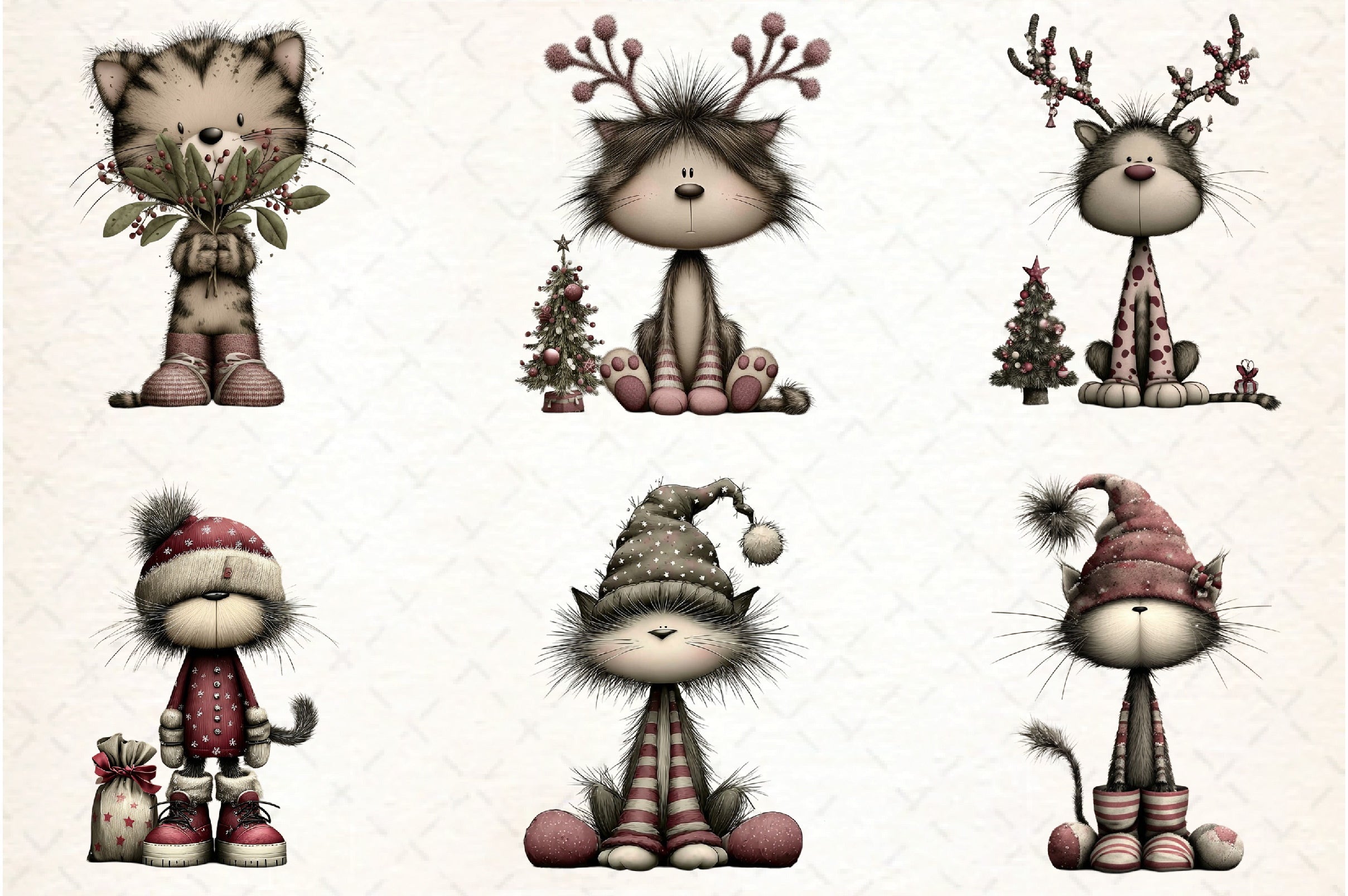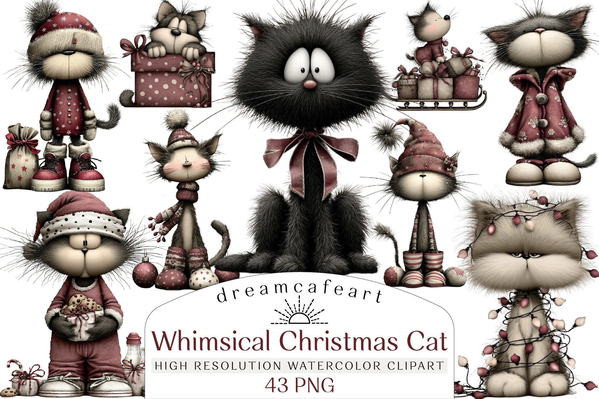 Capture the spirit of the season with our unique and playful cat clipart, designed to add a touch of whimsy to any holiday creation.