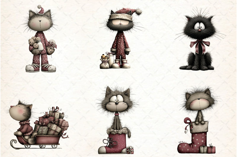 Bring joy to your holiday crafts with our exclusive collection of Christmas cat clipart, crafted to inspire creativity and festive fun.