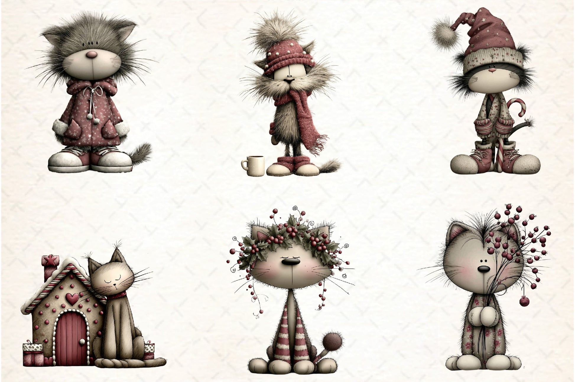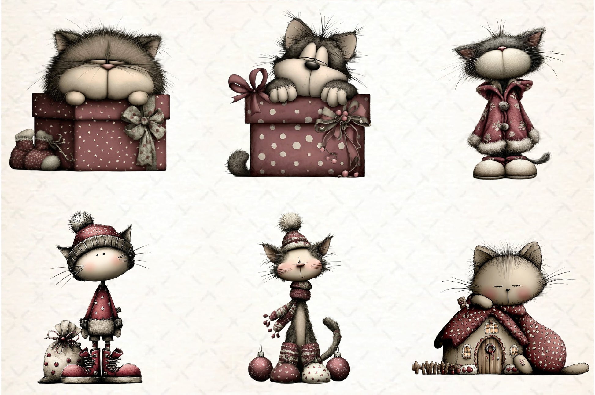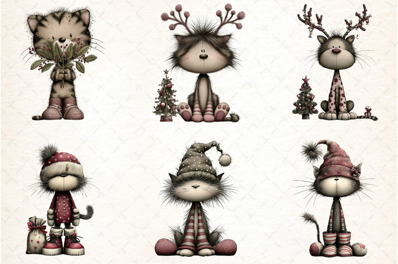 Perfect for DIY enthusiasts, this bundle offers a variety of charming cat illustrations to enhance your Christmas projects.