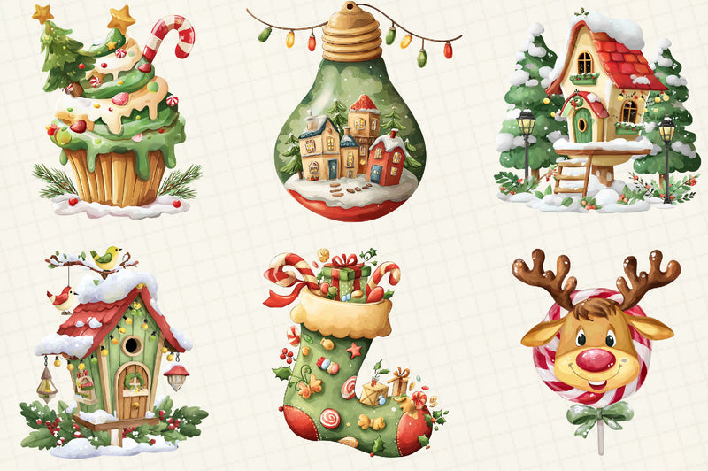 Transform your holiday projects with our Whimsical Christmas Design Clipart Bundle, featuring charming and festive illustrations perfect for creating enchanting holiday cards, decorations, and crafts.