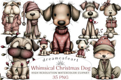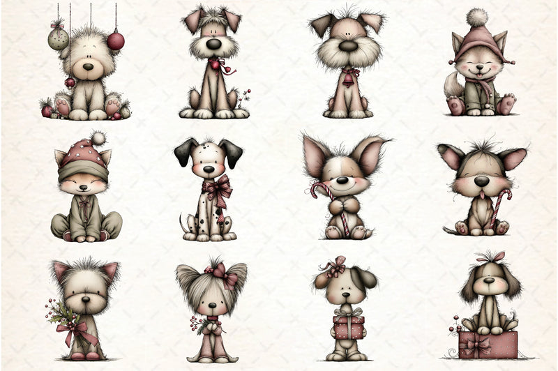 Unleash holiday cheer with our Whimsical Christmas Dog Clipart Bundle, featuring charming canine designs perfect for festive projects. Ideal for creating enchanting holiday cards, personalized gifts, and delightful decorations, this bundle brings a playful touch to your seasonal crafts. Elevate your creative projects with these adorable dog illustrations, designed to spread joy and warmth this Christmas. Perfect for DIY enthusiasts and professional designers alike, our clipart ensures your creations stand out with a unique, whimsical flair.