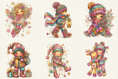 Whimsical Christmas Kids Clipart Bundle