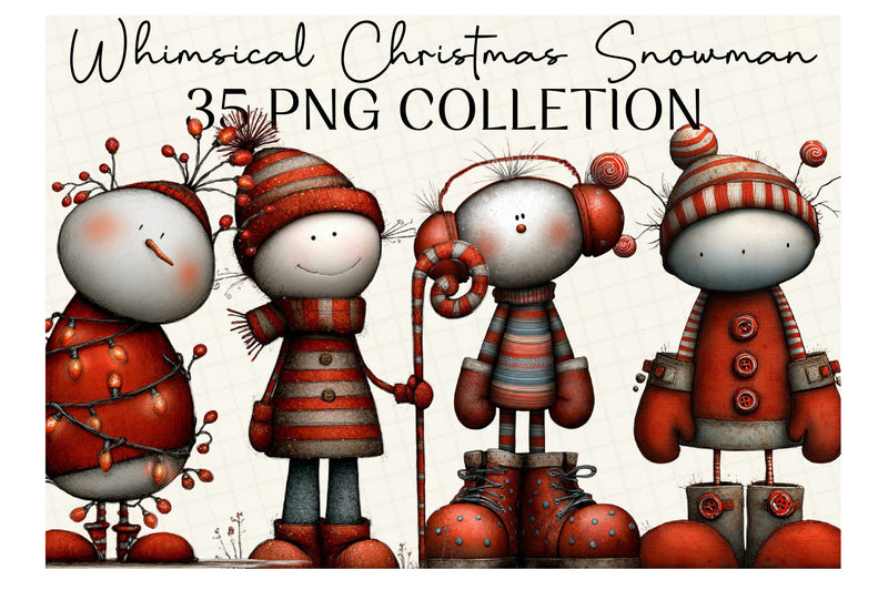Enhance your holiday creations with our Whimsical Christmas Snowman Clipart, perfect for adding a magical touch to your seasonal projects and decorations.