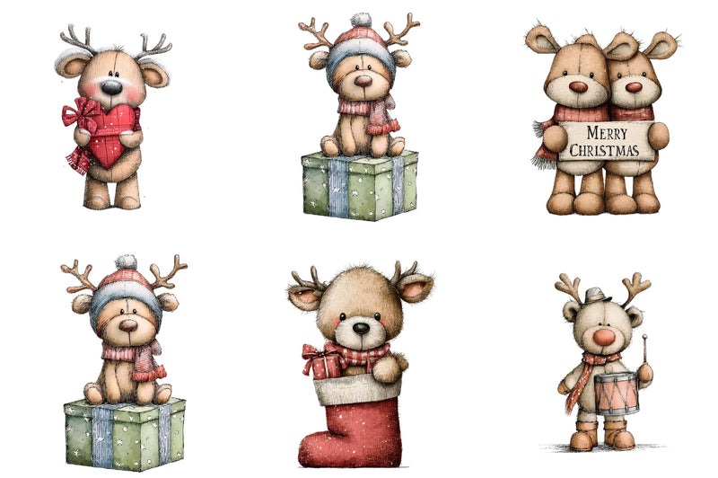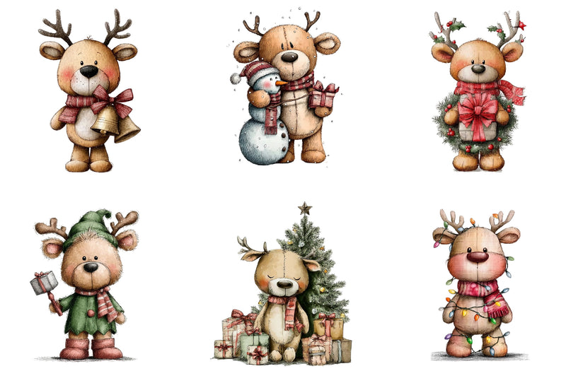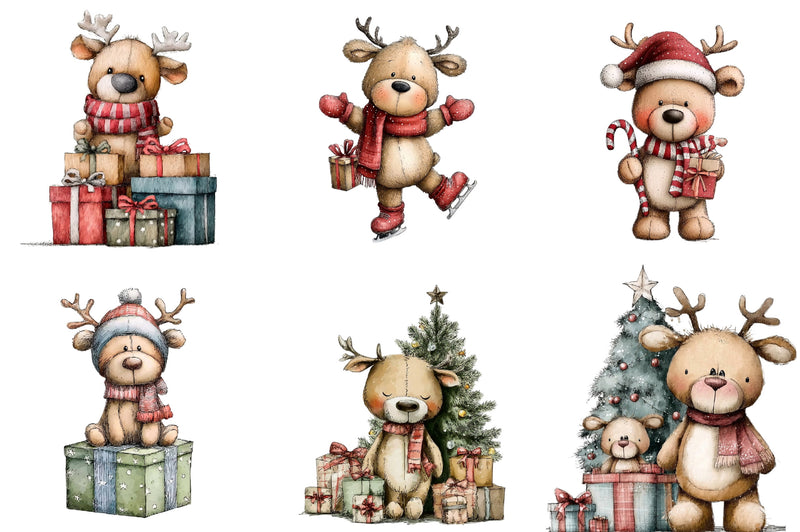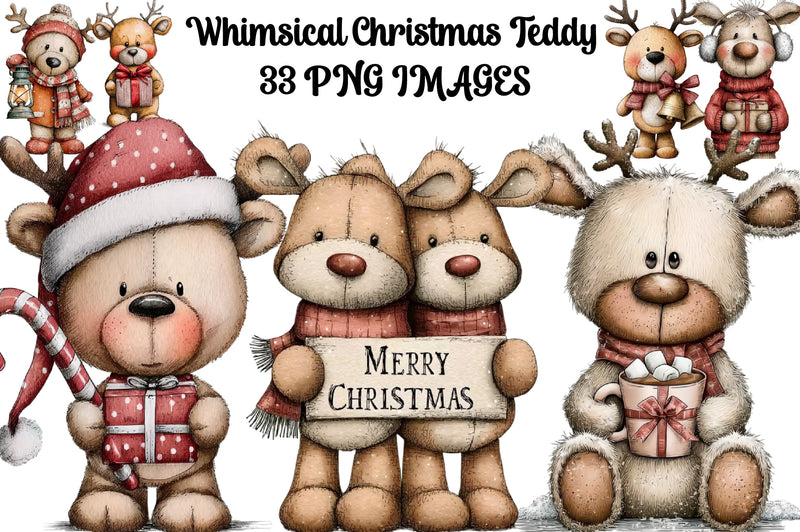 Whimsical Christmas Teddy Clipart Bundle
