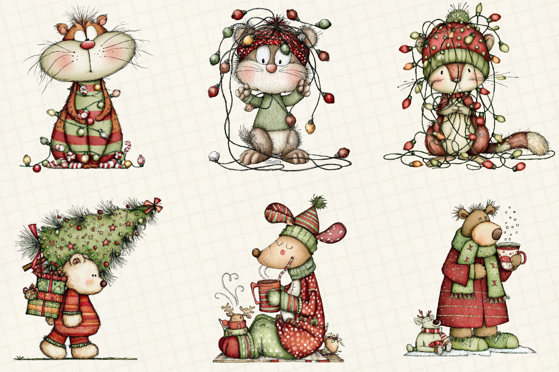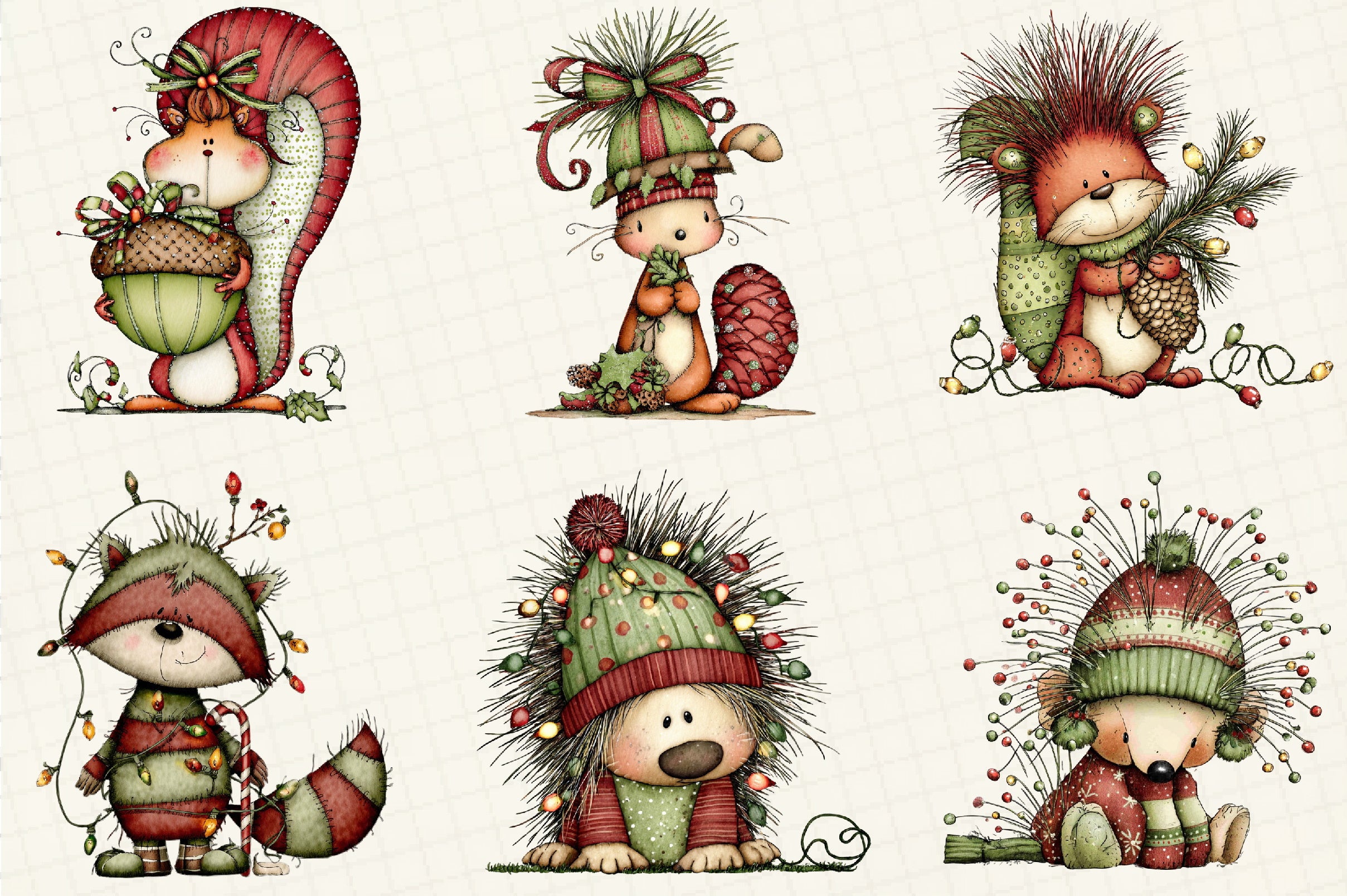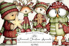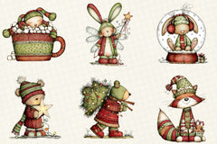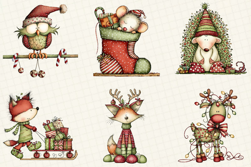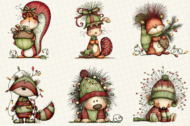 Whimsical Christmas Woodland Animals Clipart Bundle
