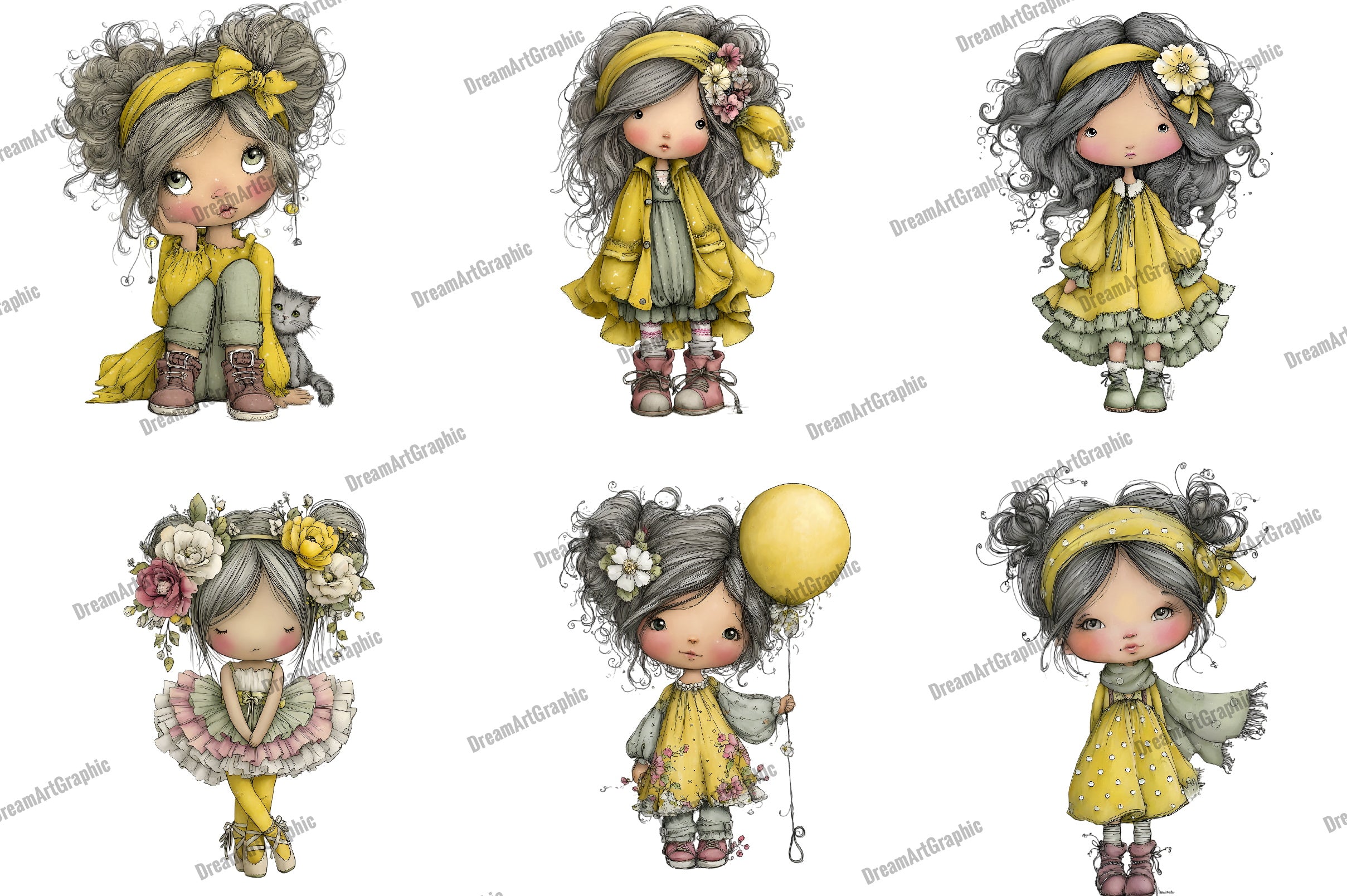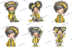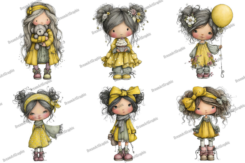 Whimsical Cute Girl Clipart Bundle