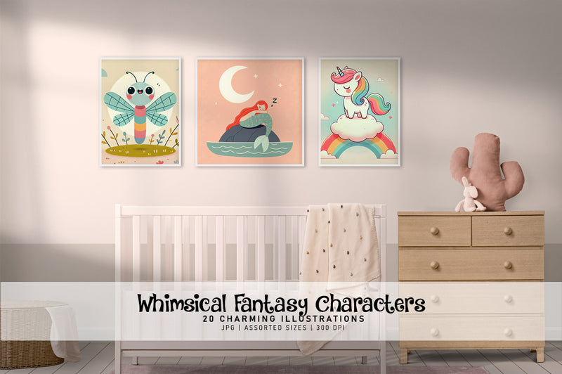 Discover the charm of Whimsical Fantasy Characters - Nursery, a delightful collection perfect for creating a magical atmosphere. Ideal for nursery decor and crafts, these enchanting designs bring fantasy to life.
