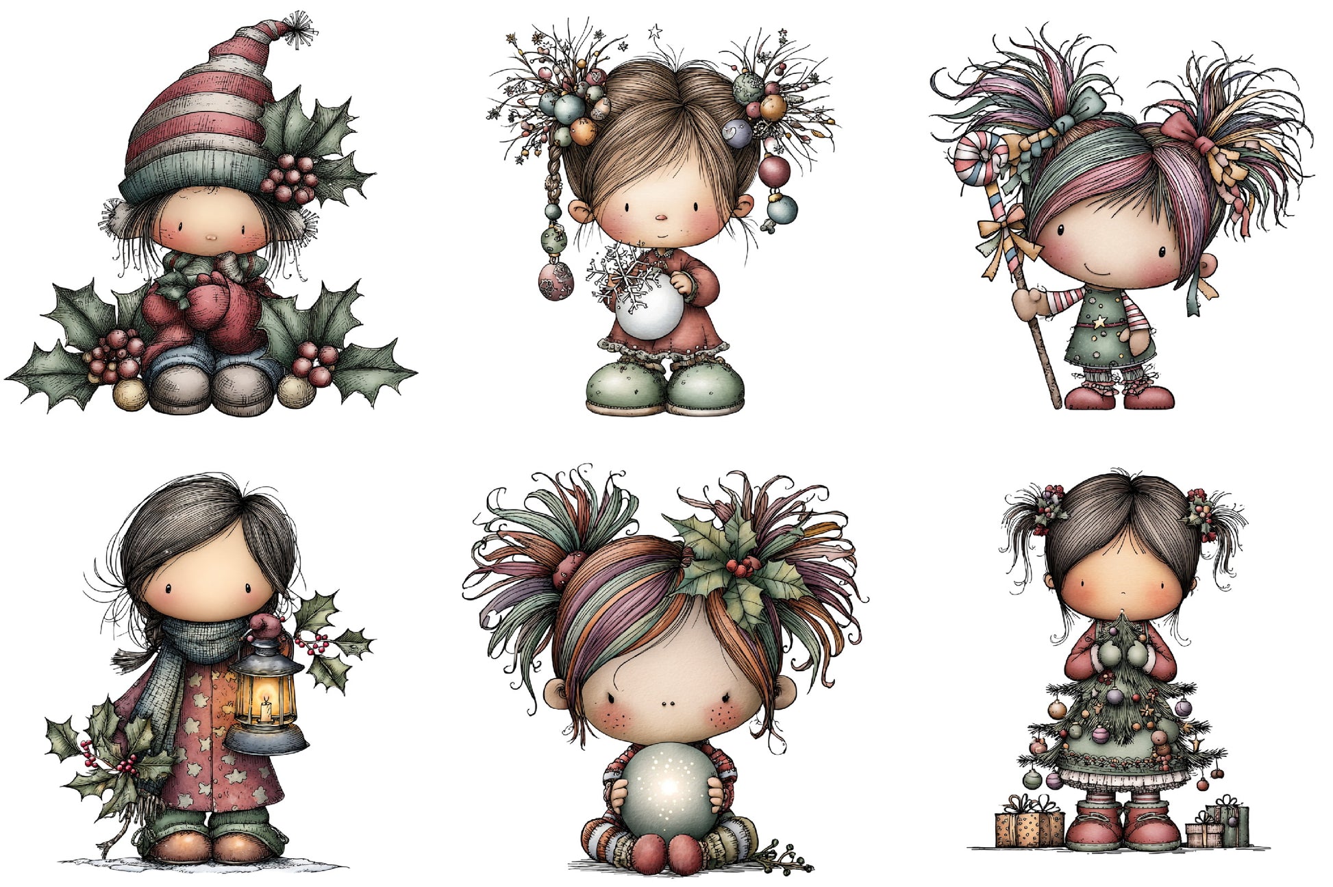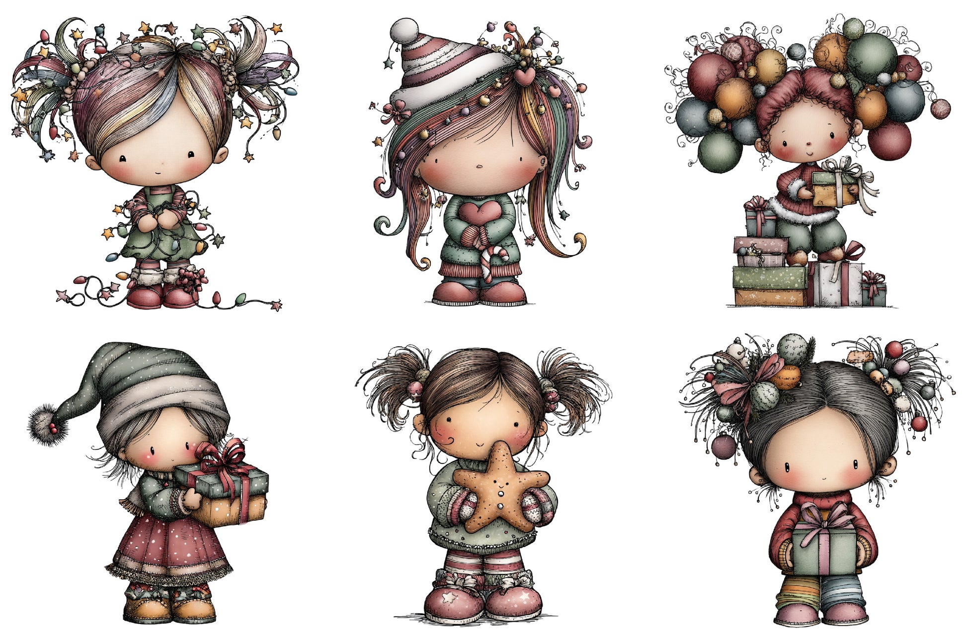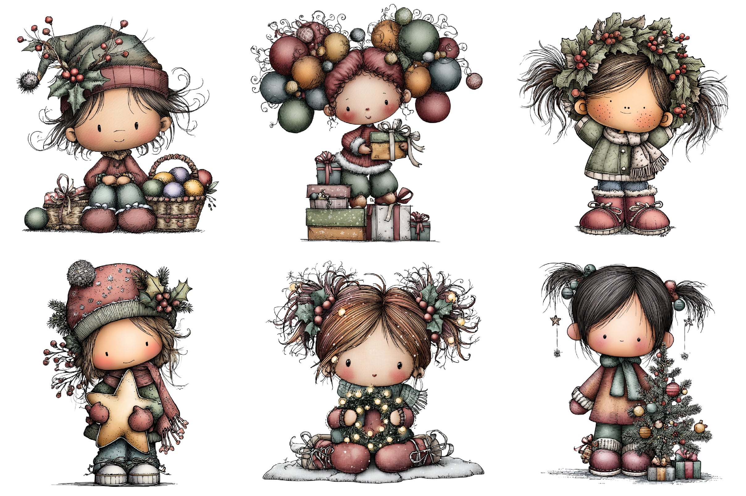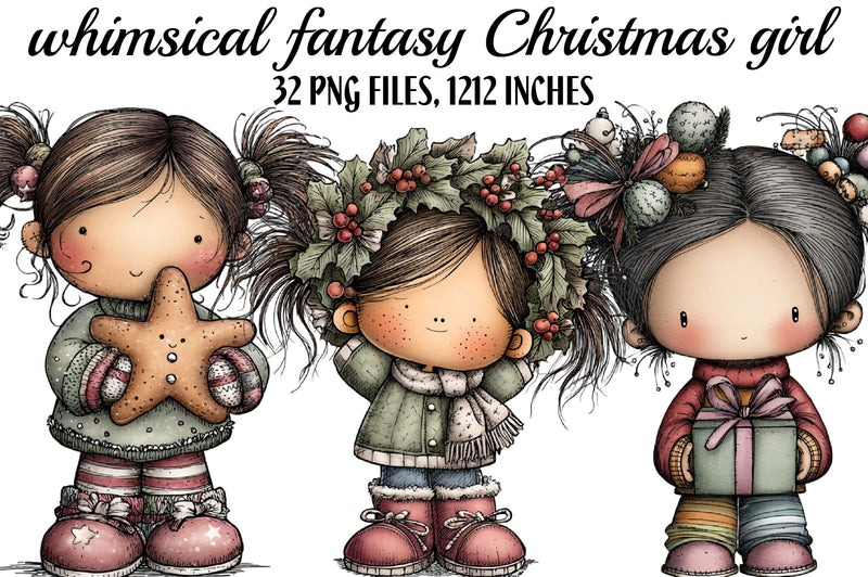 Whimsical Fantasy Christmas Girl Clipart Bundle