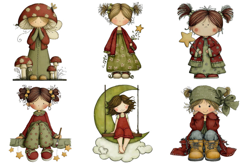 Unleash creativity with our Whimsical Girl Clipart Bundle, featuring charming and playful designs perfect for scrapbooking, invitations, and nursery decor.