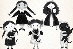 Whimsical Gothic Vampire Dolls Clipart Bundle