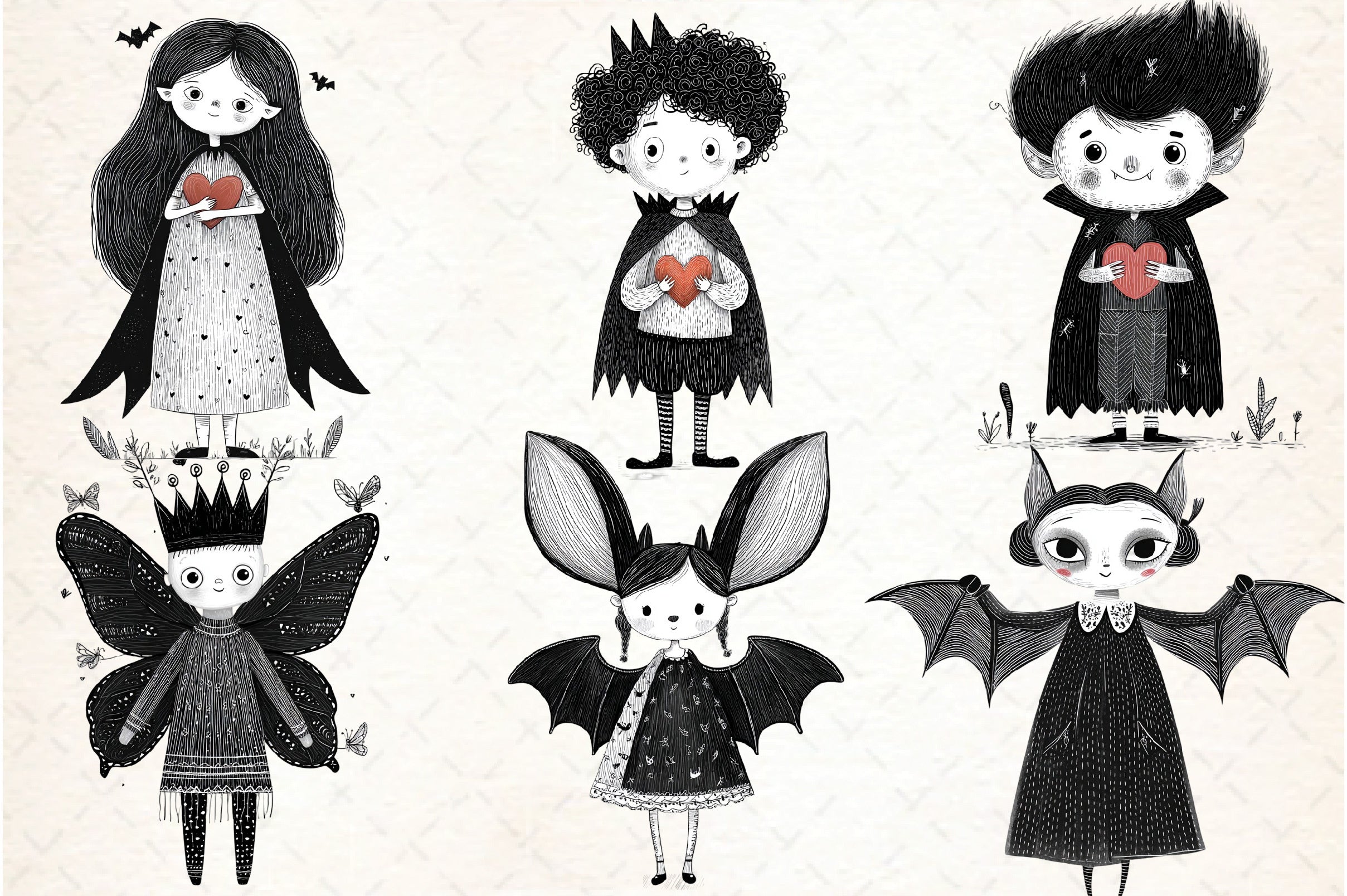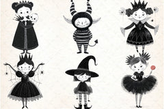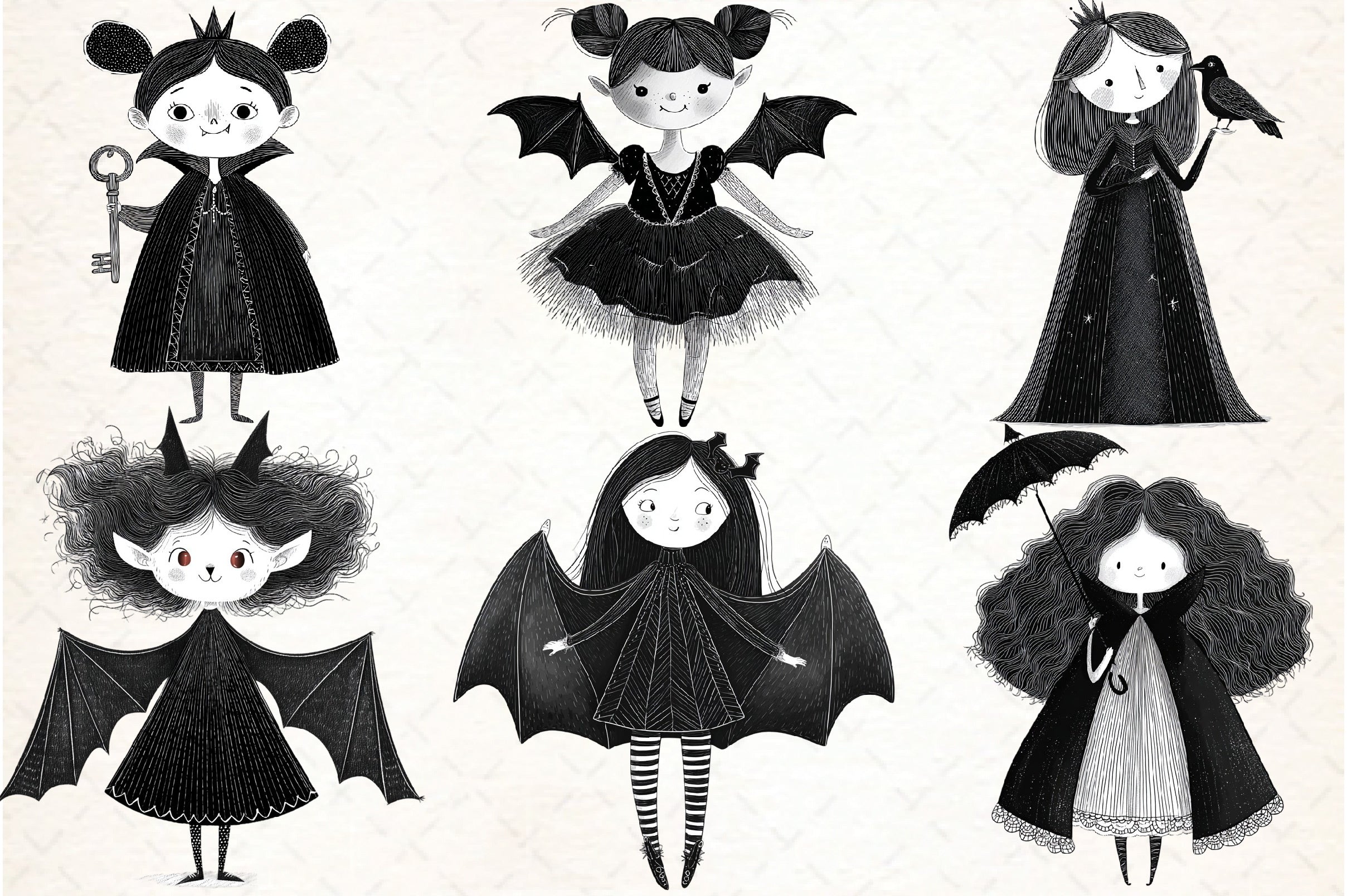 Unleash your creativity with the Whimsical Gothic Vampire Dolls Clipart Bundle, featuring enchanting and mysterious designs perfect for unique crafts and projects. Dive into a world of dark elegance with these captivating illustrations, ideal for Halloween decorations, gothic-themed invitations, and more. Transform your creative vision with this versatile collection, designed to add a touch of whimsy and intrigue to any project. Perfect for digital scrapbooking, personalized gifts, and artistic endeavors, this bundle is a must-have for those who love the allure of the gothic aesthetic.