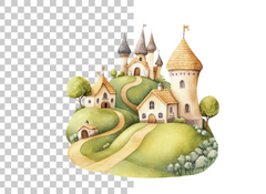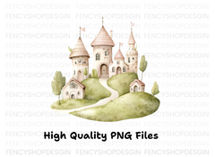 Transform your creative projects with the Whimsical Hilltop Castle Clipart Bundle, featuring enchanting castle illustrations perfect for magical invitations, dreamy nursery decor, and fairy tale-themed crafts.