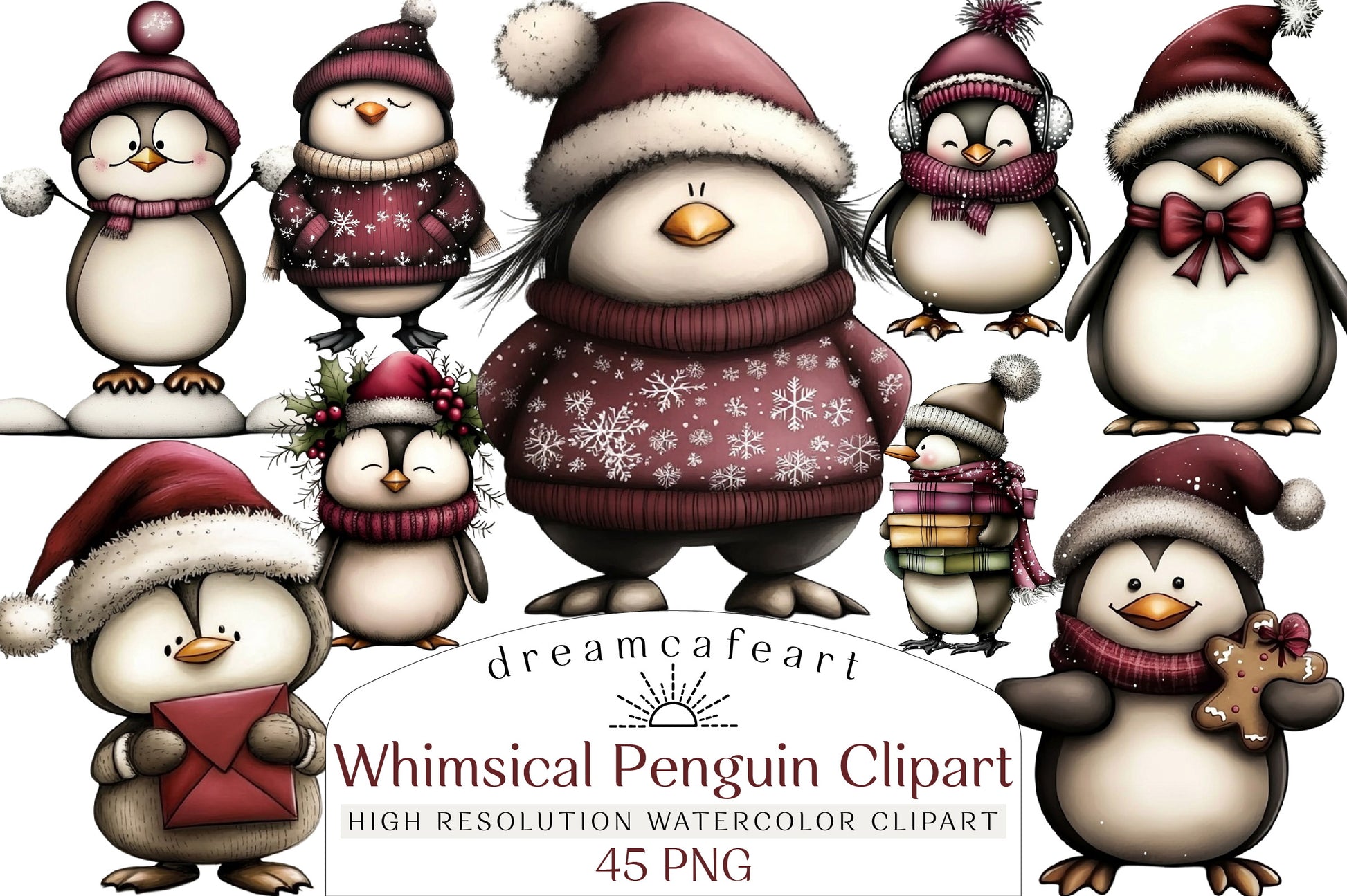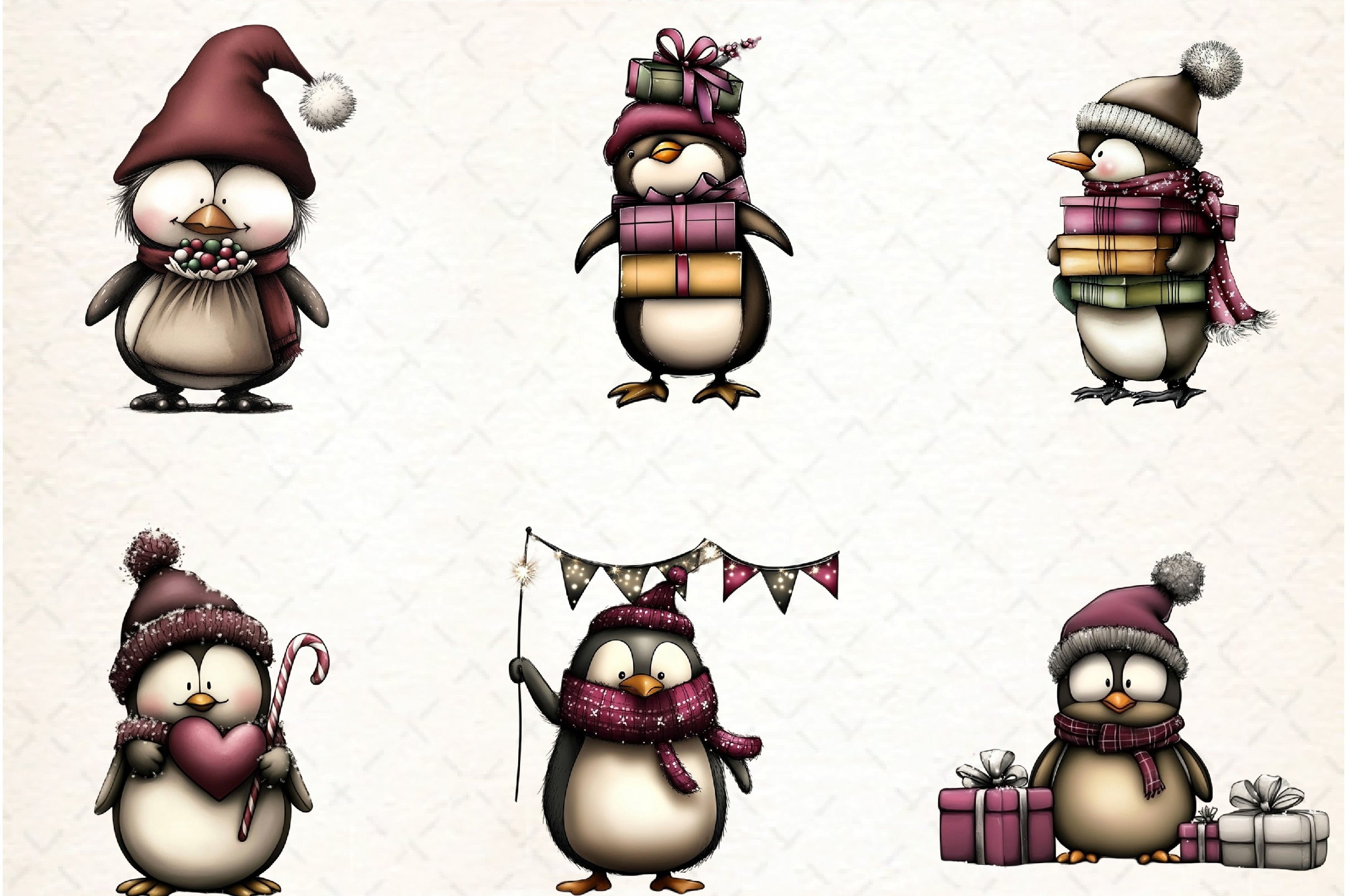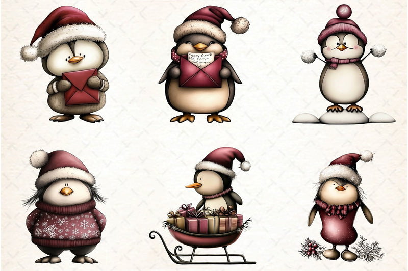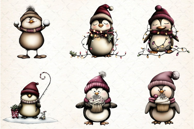 Delight in the charm of our Whimsical Penguin Clipart Bundle, featuring playful penguin illustrations perfect for creative projects and festive crafts.