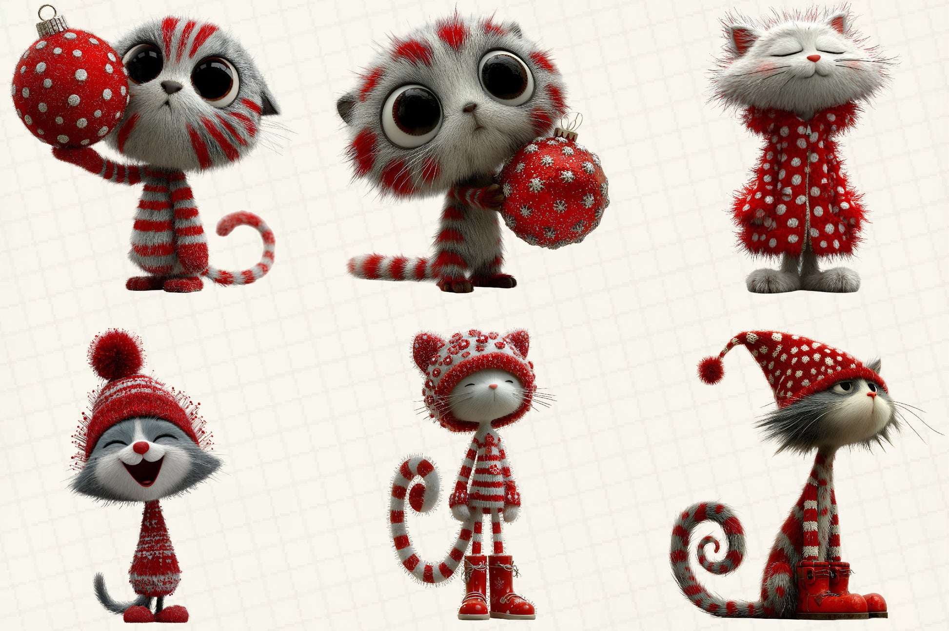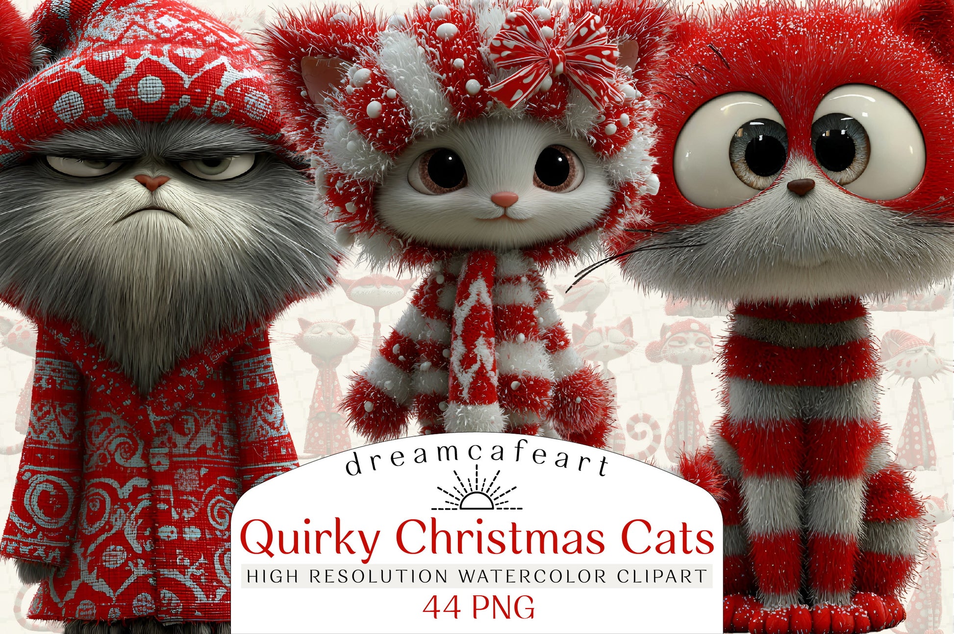 Whimsical Quirky Christmas Cats Clipart Bundle