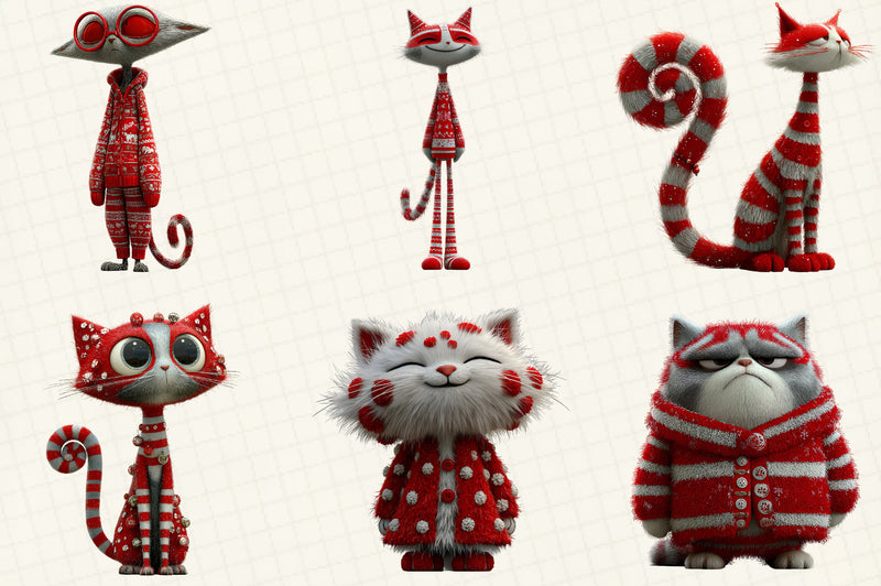 Unleash holiday cheer with our Whimsical Quirky Christmas Cats Clipart Bundle, featuring playful feline designs perfect for festive crafts and creative projects. Ideal for adding a touch of whimsy to your holiday cards, decorations, and digital creations, these charming cat illustrations bring joy and personality to any Christmas theme. Perfect for crafters, designers, and cat lovers alike, this bundle offers endless possibilities for unique and delightful holiday expressions.