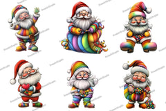 Whimsical Rainbow Santa Clipart Bundle