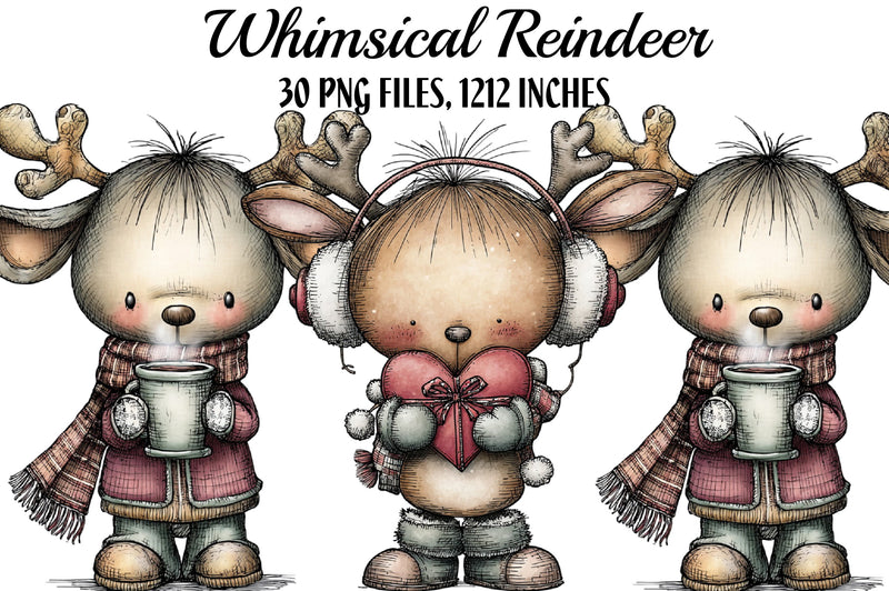 Unleash creativity with our Whimsical Reindeer Clipart Bundle, featuring charming reindeer designs perfect for festive projects and holiday crafts.