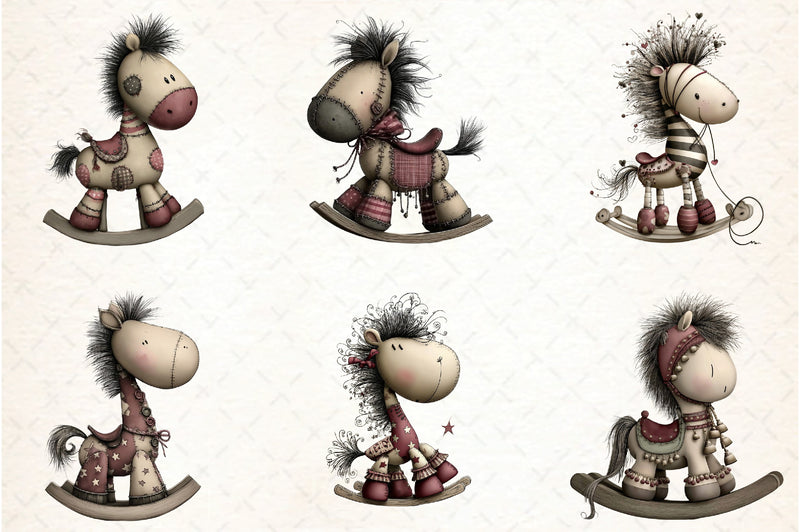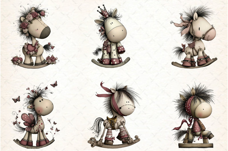 Whimsical Rocking Horse Clipart Bundle
