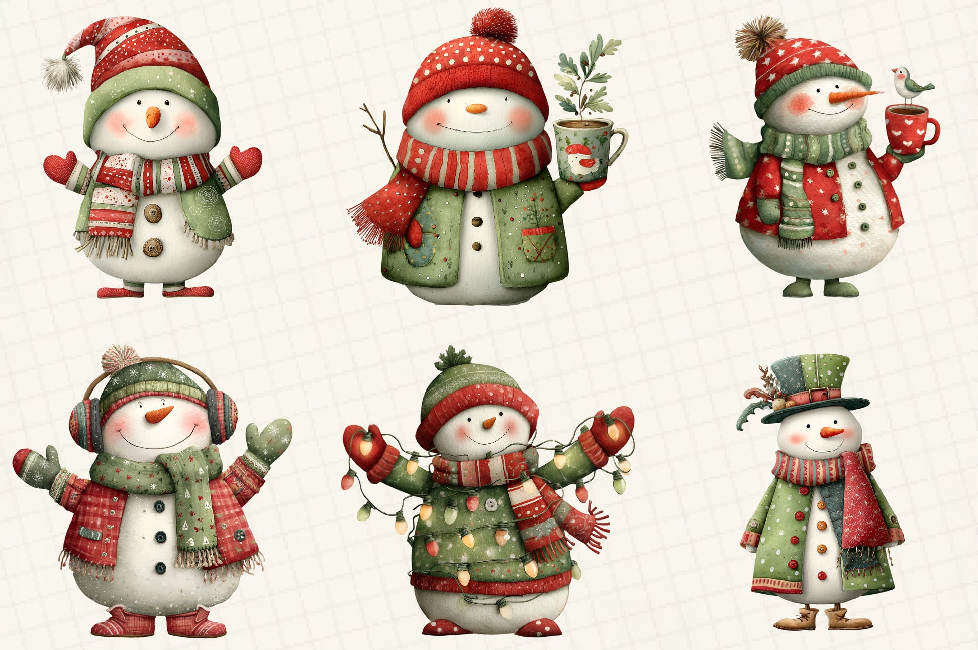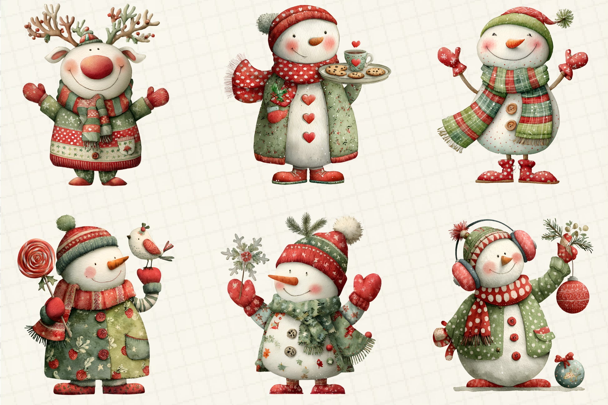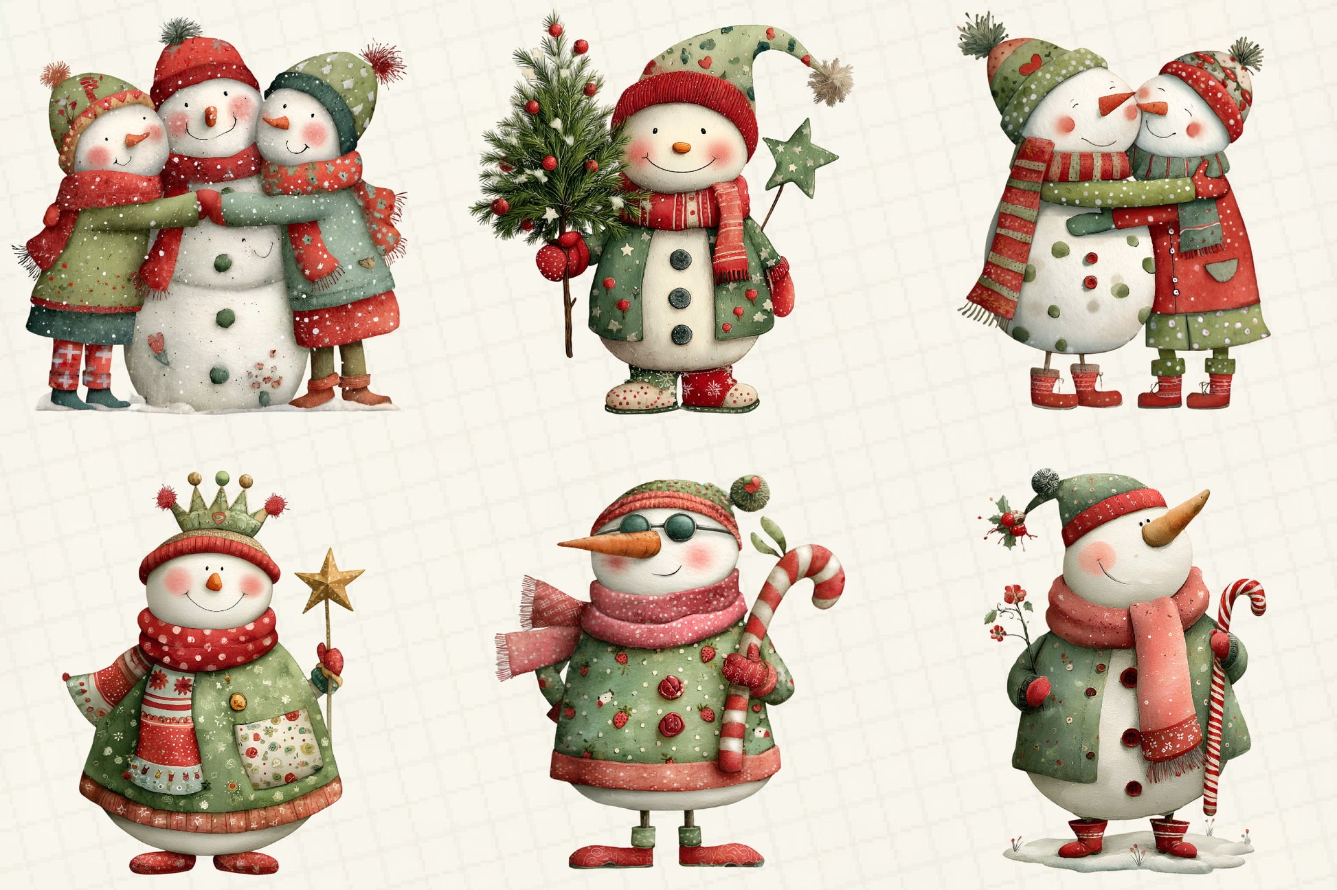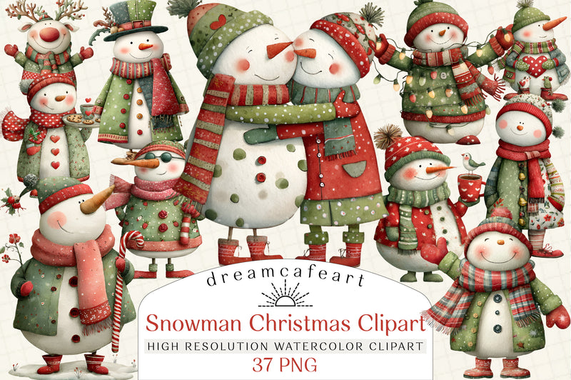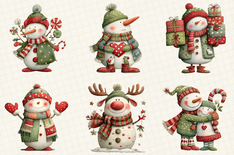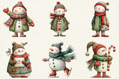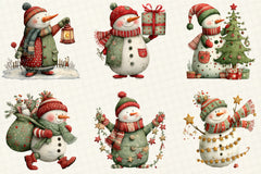 Whimsical Snowman Christmas Clipart Bundle