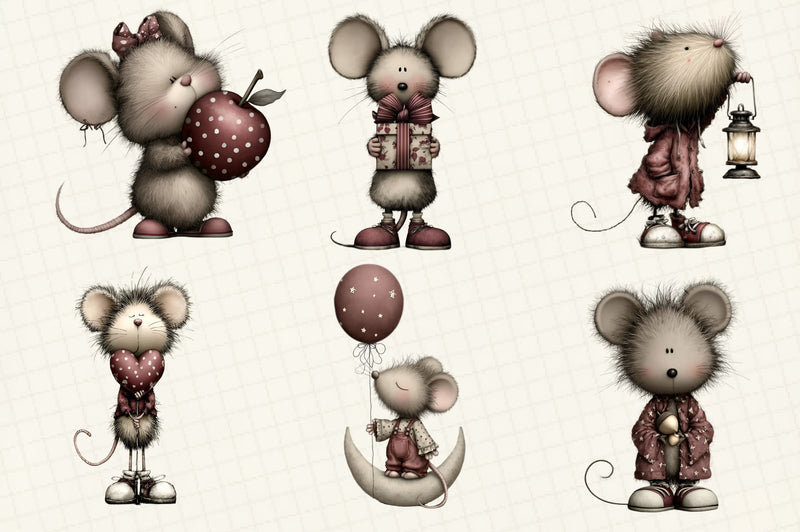 Discover the charm of our Whimsical Tiny Mouse Clipart Bundle, perfect for adding a touch of magic to your creative projects. Featuring delightful mouse illustrations, this collection is ideal for scrapbooking, nursery decor, and whimsical crafts. Unleash your creativity with these enchanting designs, perfect for invitations, greeting cards, and more. Elevate your artistic endeavors with this versatile and adorable clipart set, designed to inspire and captivate.