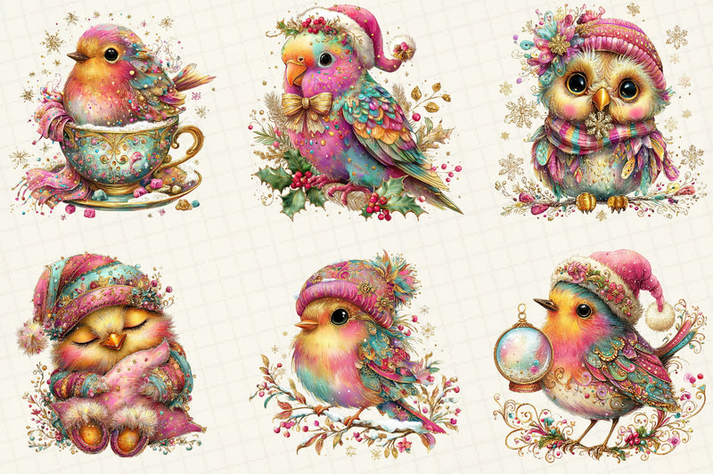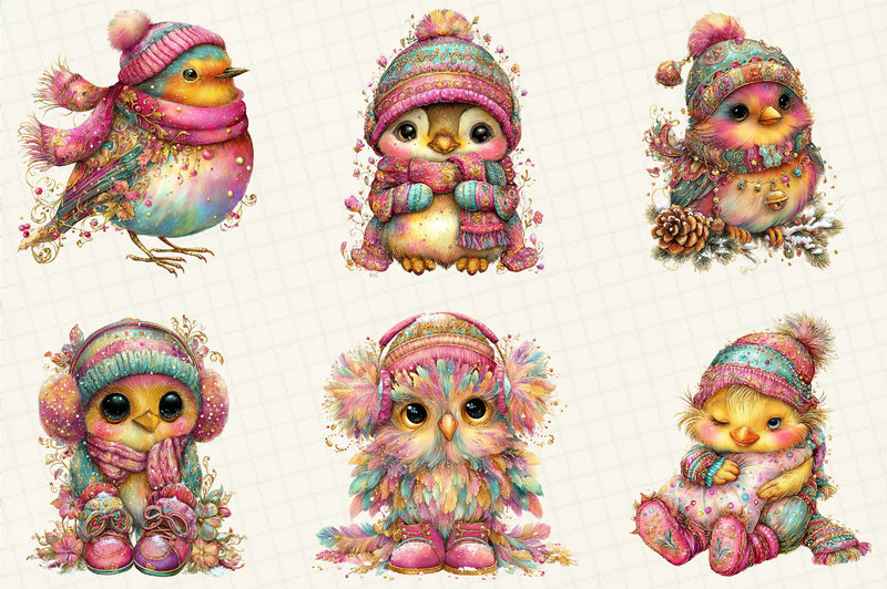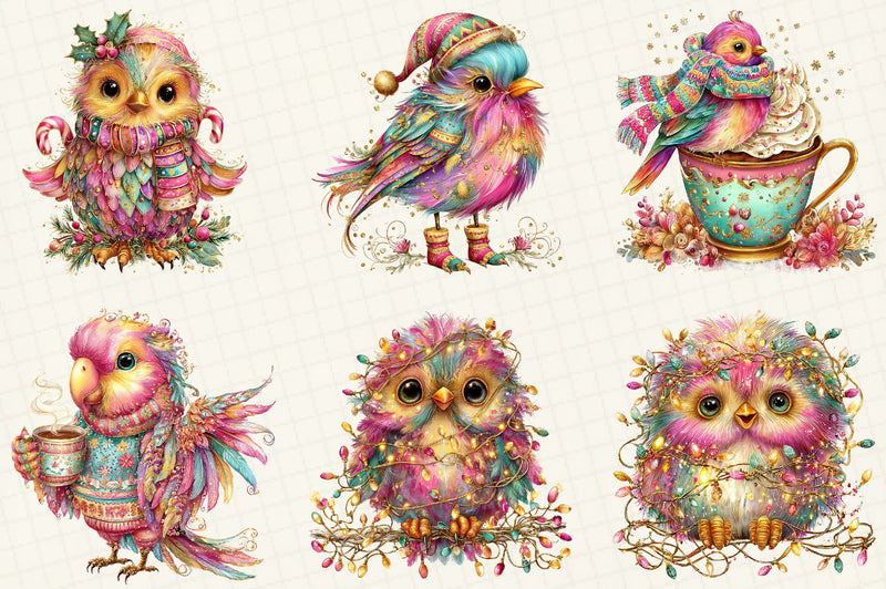 Unleash your imagination with the Whimsical Winter Bird Clipart Bundle, offering a variety of unique bird designs for all your creative needs.