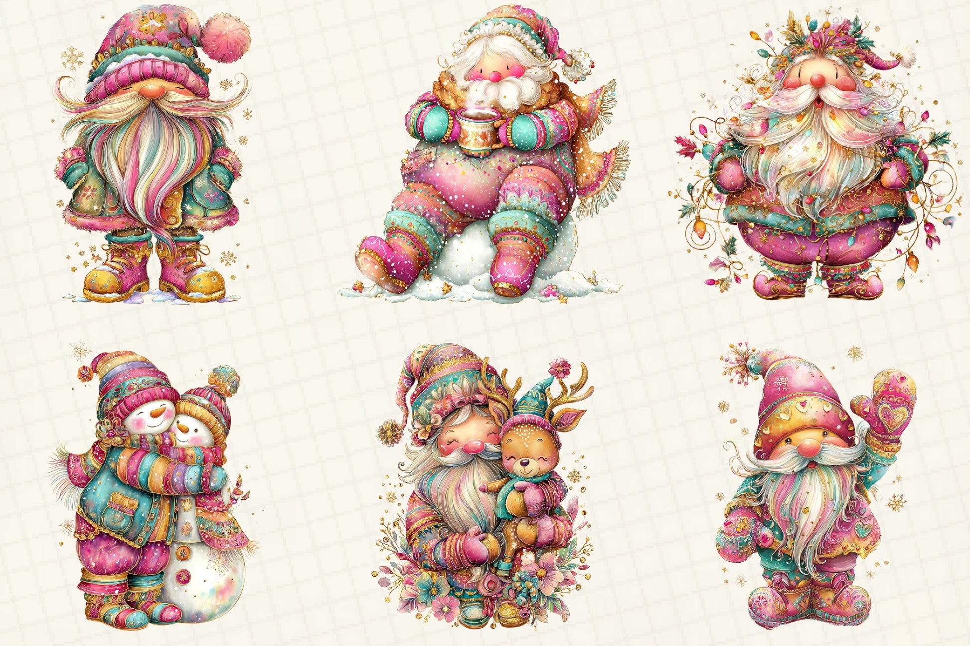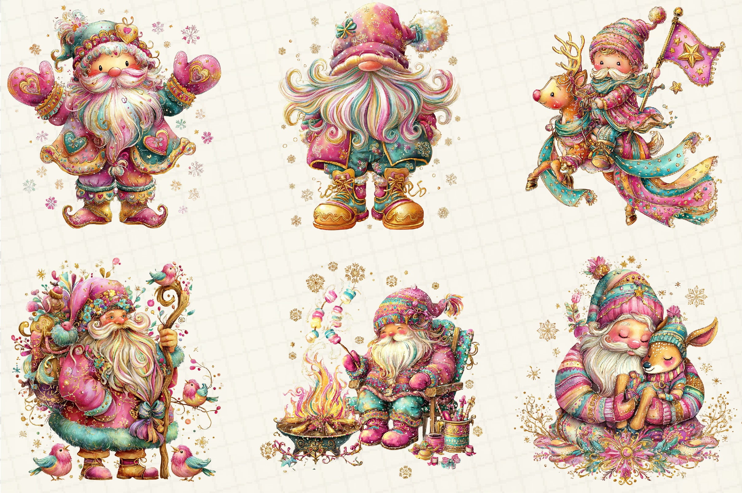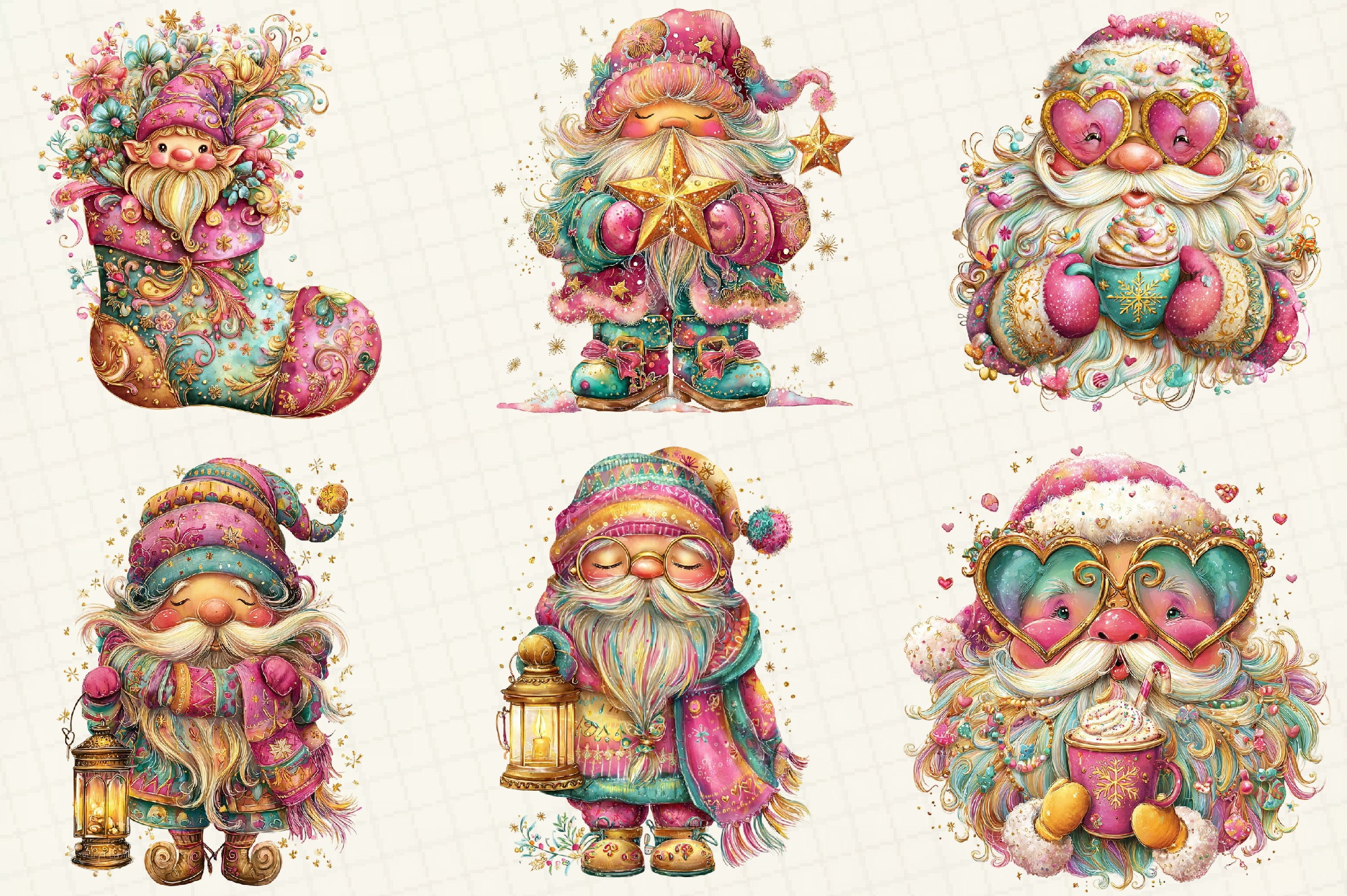 Whimsical Winter Santa Clipart Bundle