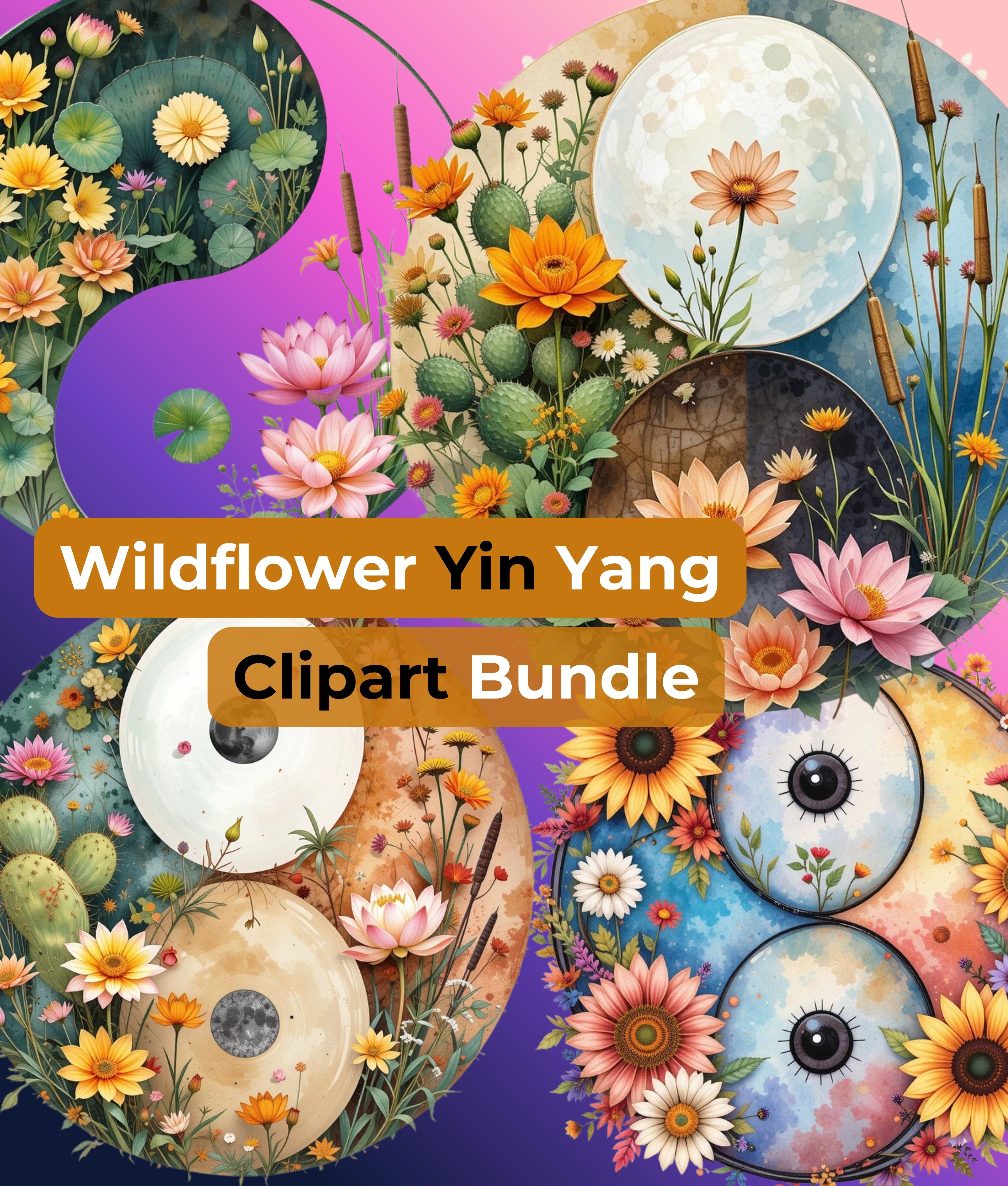 Wildflower Yin Yang Clipart Bundle