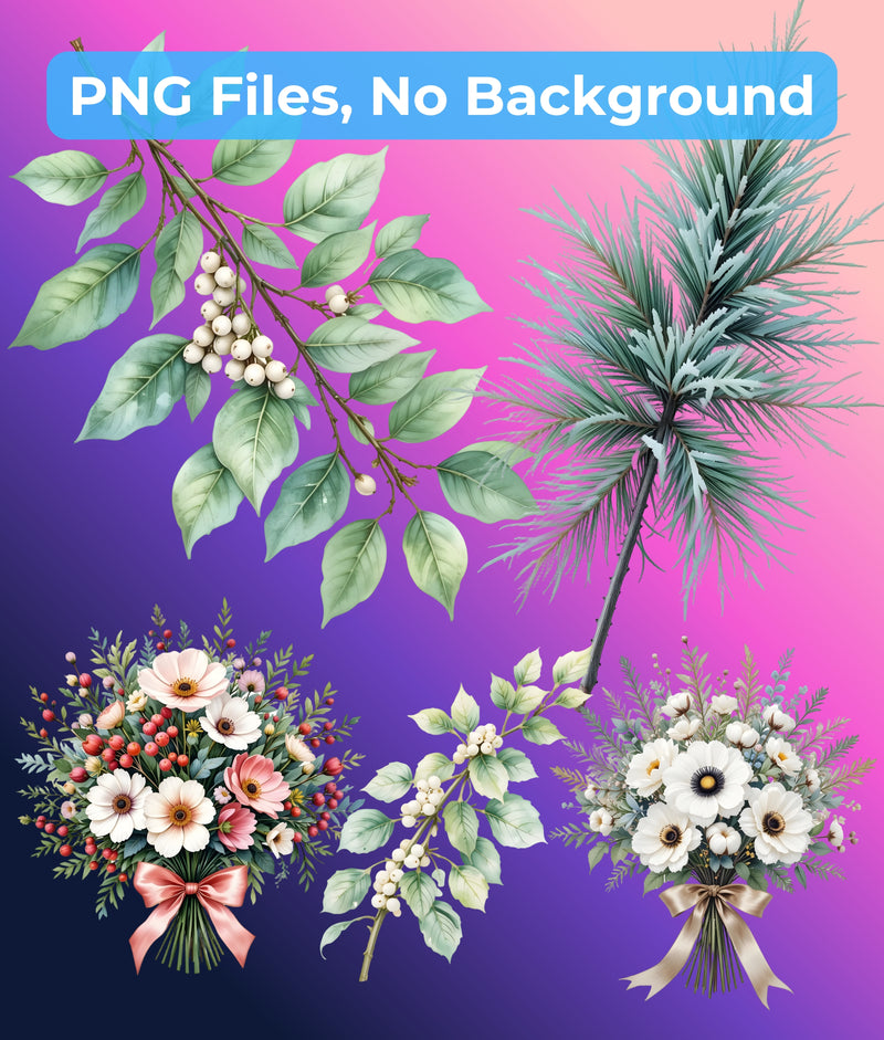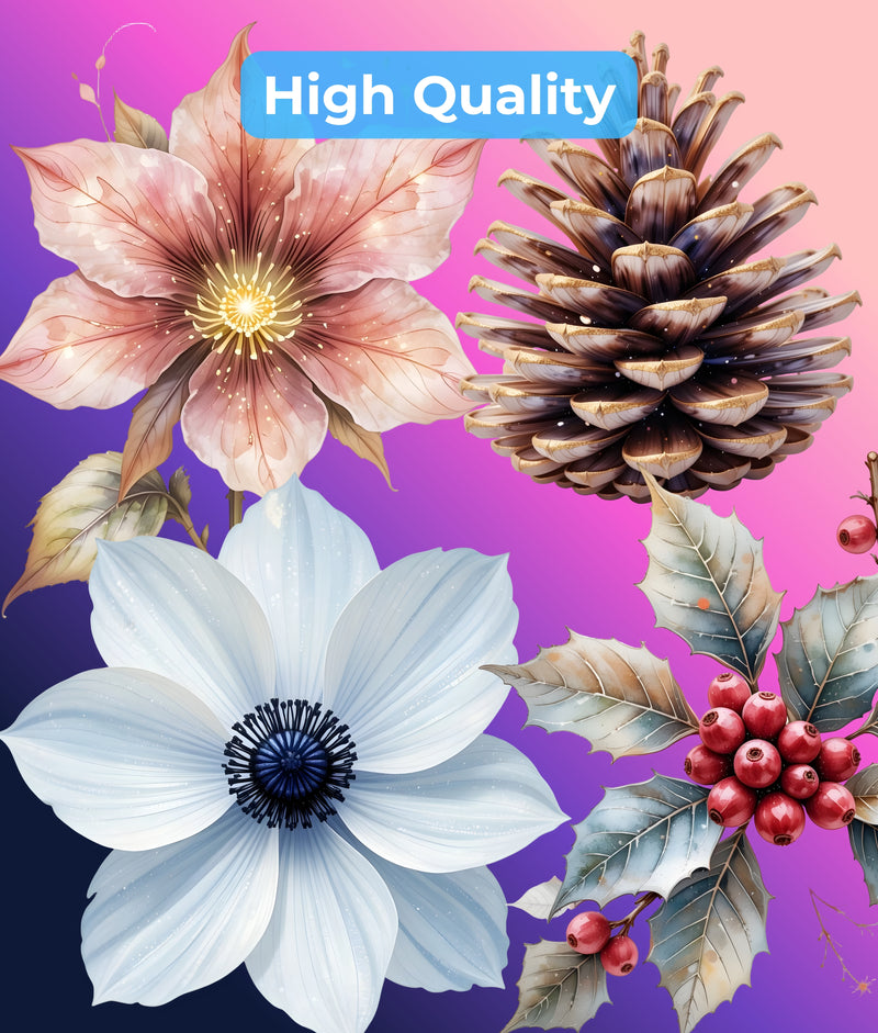 Enhance your creative projects with our Winter Botanical Elements Clipart Bundle. This exquisite collection features a variety of hand-drawn winter foliage, perfect for seasonal invitations, holiday cards, and festive decorations. Capture the essence of winter with these high-quality, versatile designs, ideal for both digital and print use. Transform your artwork with the charm of winter botanicals today!