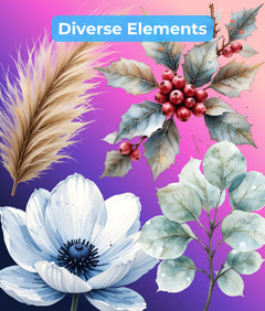 Winter Botanical Elements Clipart Bundle