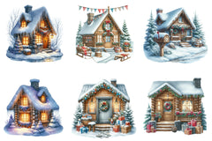 Winter Christmas Cabin Clipart Bundle