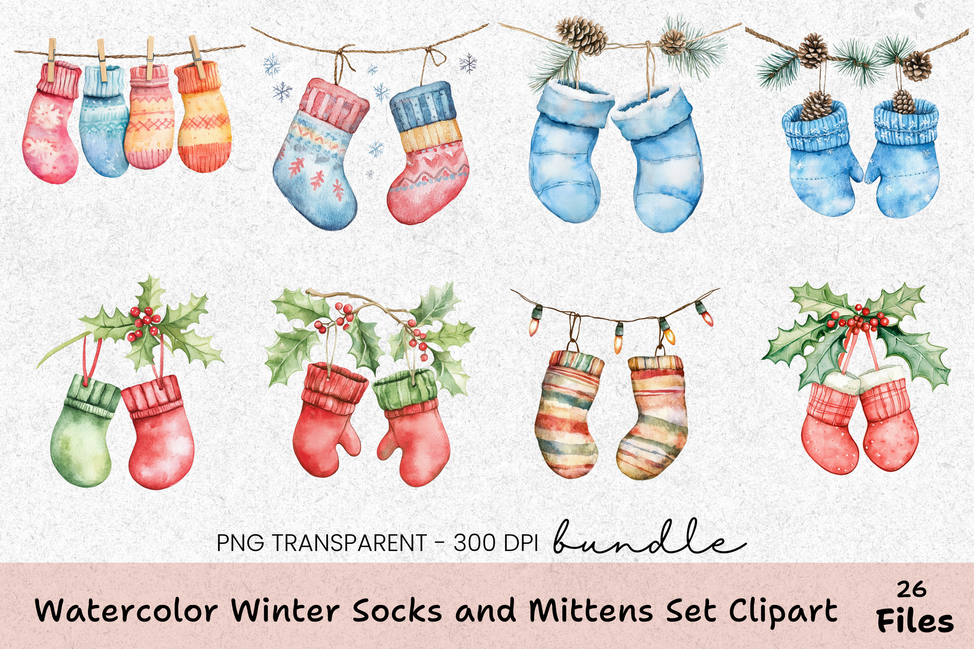Winter Socks and Mittens Clipart Bundle