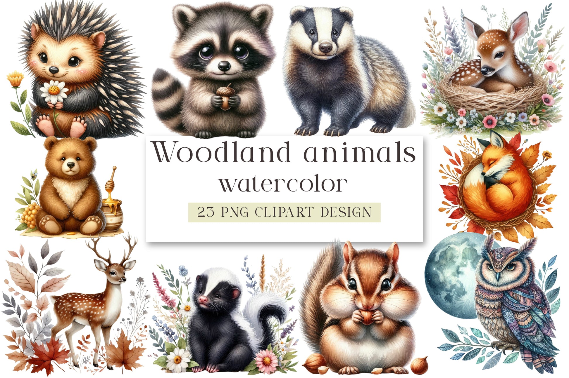 Bring the magic of the forest to your projects with our Woodland Animals Design Clipart, perfect for invitations, decor, and DIY crafts.