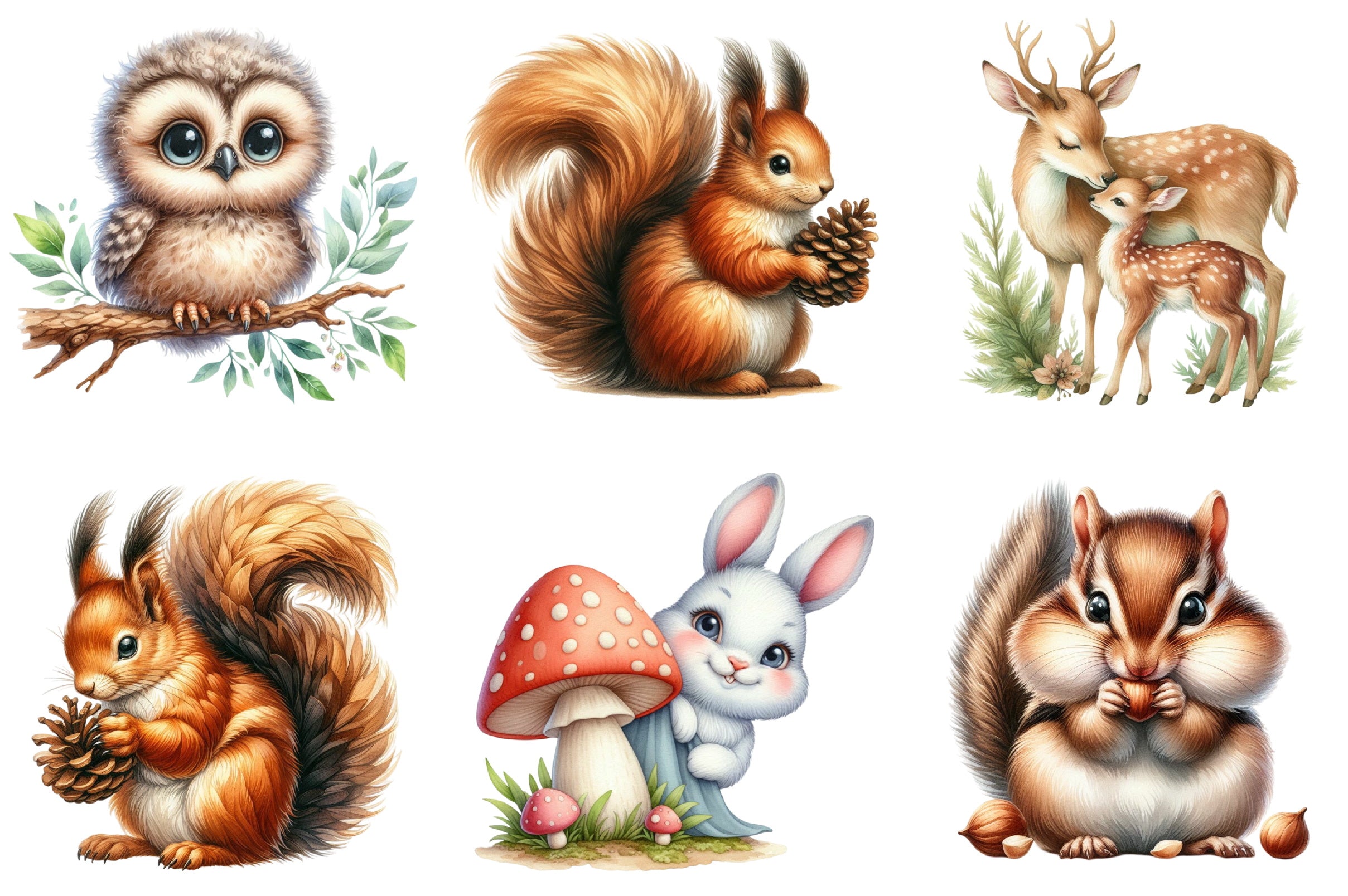 Discover the charm of the Woodland Animals Design Clipart Bundle, featuring delightful forest creatures perfect for whimsical nursery projects and creative crafts.