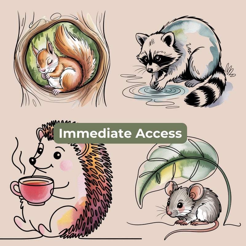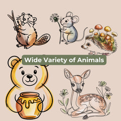 Unleash creativity with our Woodland Animals Doodle Clipart Bundle, featuring charming hand-drawn forest creatures perfect for whimsical nursery projects and enchanting DIY crafts.