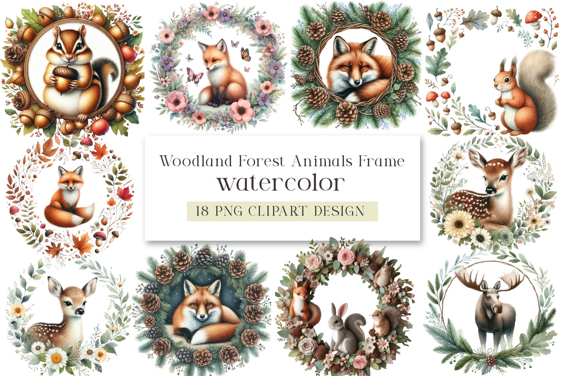 Explore the beauty of nature with the Woodland Forest Animals Clipart Bundle, featuring high-quality images of beloved forest animals for all your creative needs.