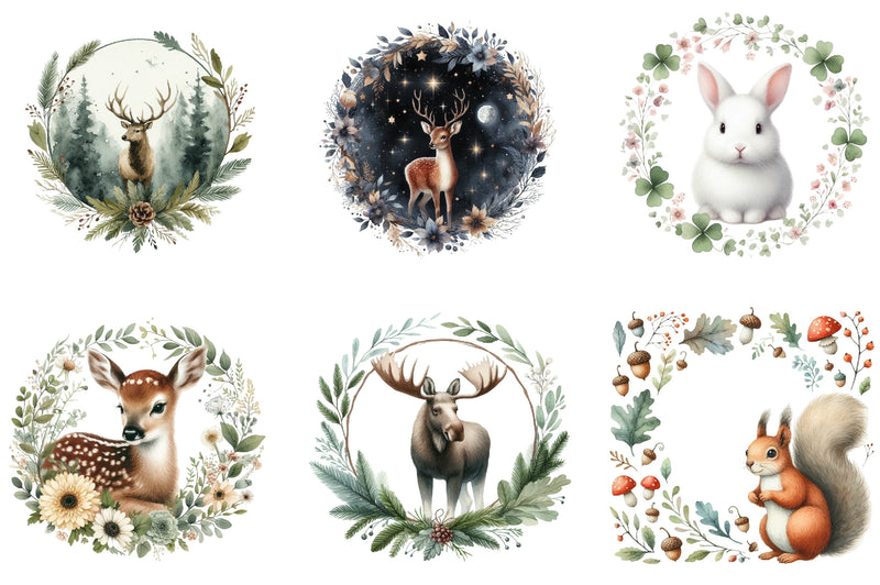 Unleash your creativity with our enchanting Woodland Forest Animals Clipart Bundle, ideal for scrapbooking, invitations, and more.
